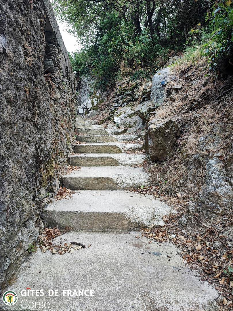Der Zugang zum Ferienhaus erfolgt über einen ca. 70 Meter langen öffentlichen Weg mit zwei Treppenabsätzen (je ca. 30 Stufen).