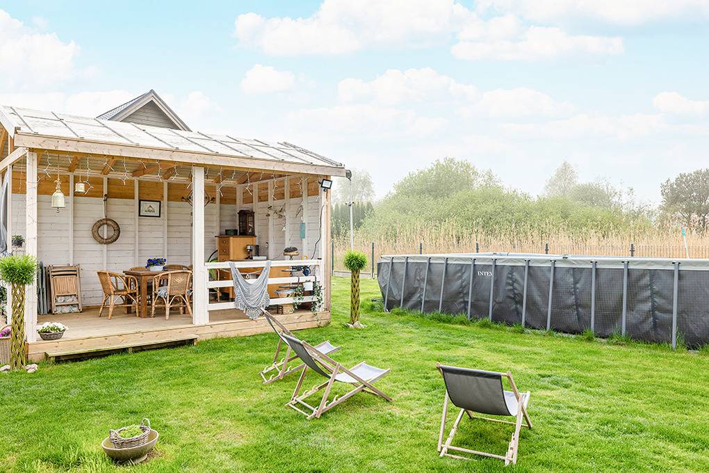 Haus: Kleine Ferienhaussiedlung mit 11 schönen, niveauvollen Holzblockhäusern auf gepflegtem, eingezäunten Grundstück. In der Anlage: Außenpool (4 x10 m Juni-August, nicht beheizt). Fahrradverleih n.V. (Gebühr). Holz-Pavillon zur gemeinschaftlichen Nutzung. Lagerfeuerstelle. Kleiner Kinderspielplatz mit Schaukeln, Rutschen, Klettergerüst, Trampolin.