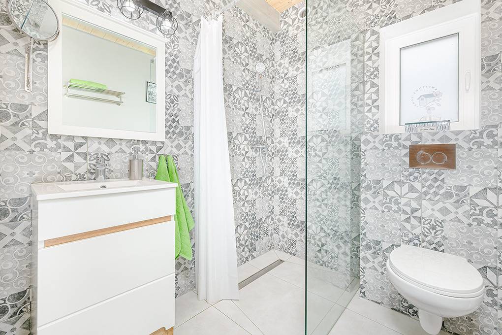 PL 45.5 Ferienhaus 2-6 Pers.: Mit viel Liebe zum Detail eingerichtetes 3-Zimmerhaus mit 60 qm Wohnfläche über zwei Etagen. Parterre: Geräumiger, lichtdurchfluteter Wohn/-Essraum mit Couch (Ausziehcouch 2 Pers), Sat-TV mit dt. Programmen, Internet (WLan über LTE), Esstisch, Küchenzeile (2 Pl. Induktion, Mikrowelle, Spülmaschine). Bad/WC. Vom Wohnraum Holztreppe ins Dachgeschoss mit Schrägen: Doppelzimmer, 2-Bettzimmer mit Eizelbetten. Überdachte Terrasse mit Sitzmöbeln, Poolblick. Die Anlage ist Video-überwacht.