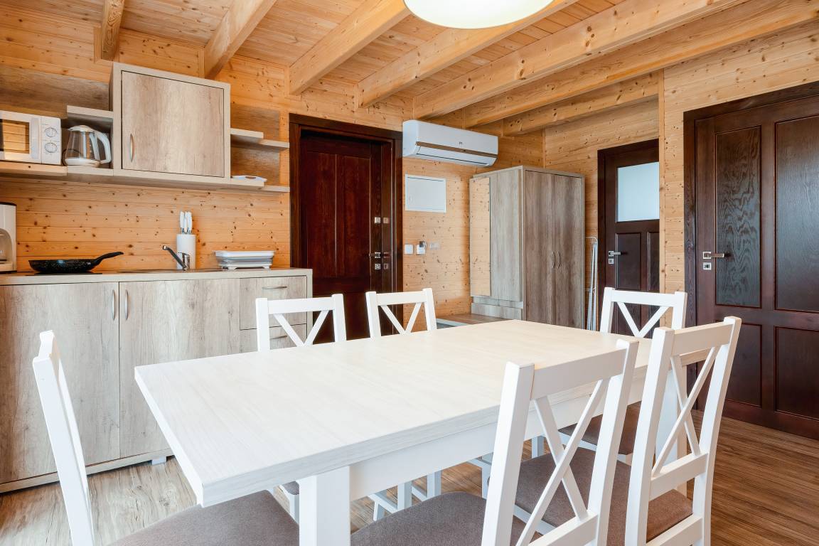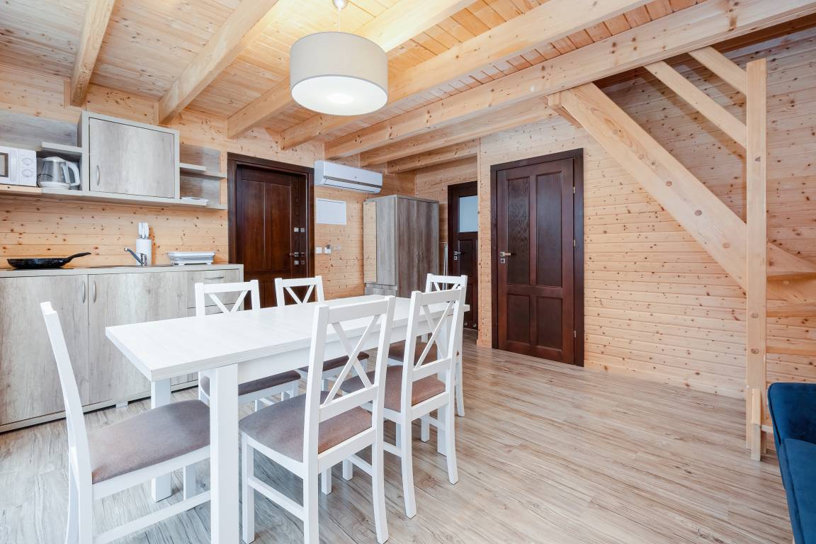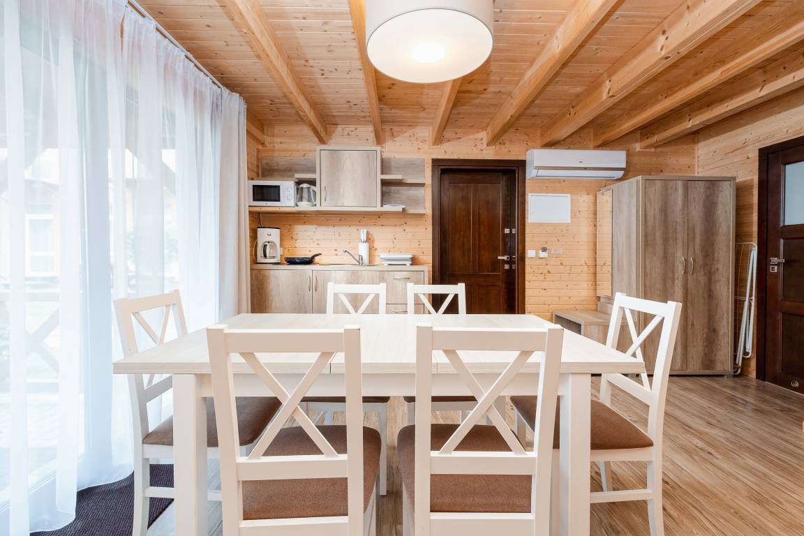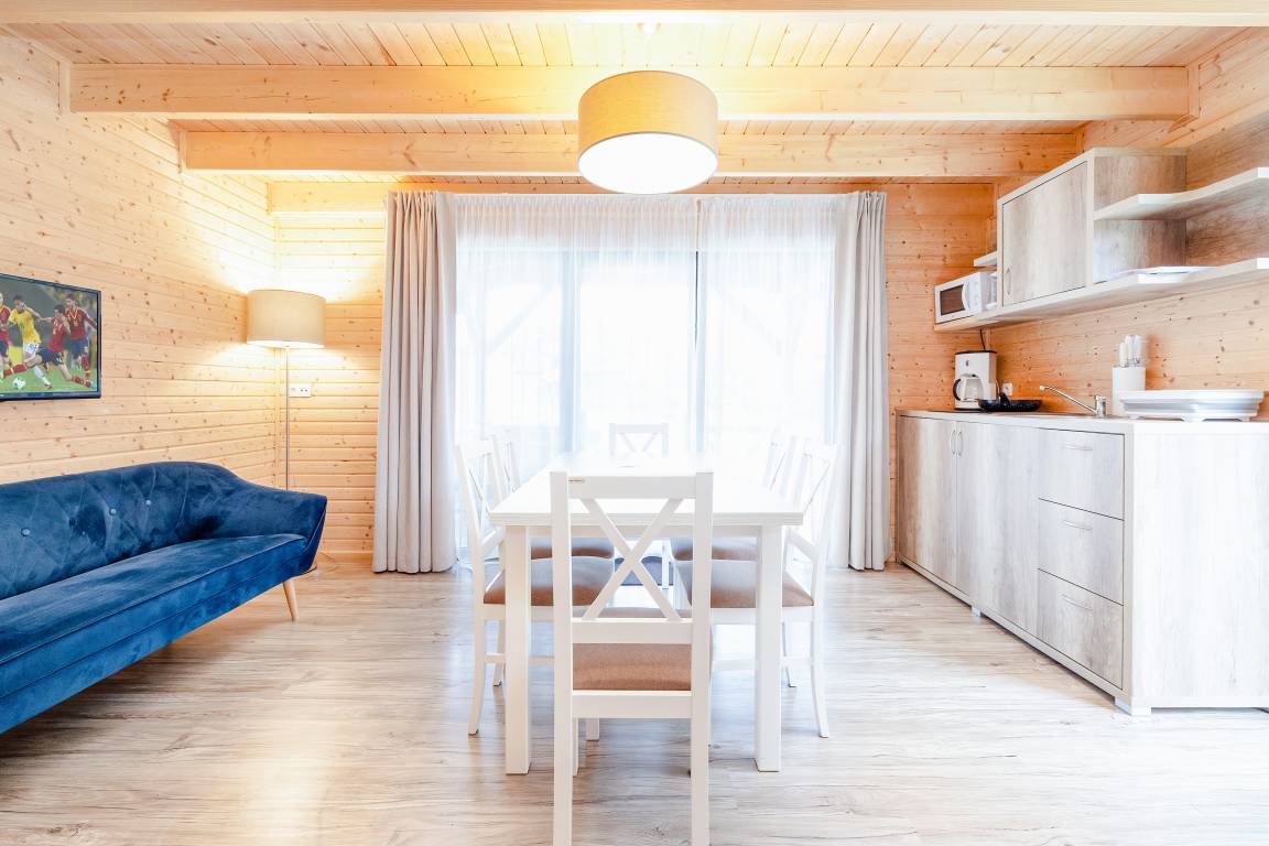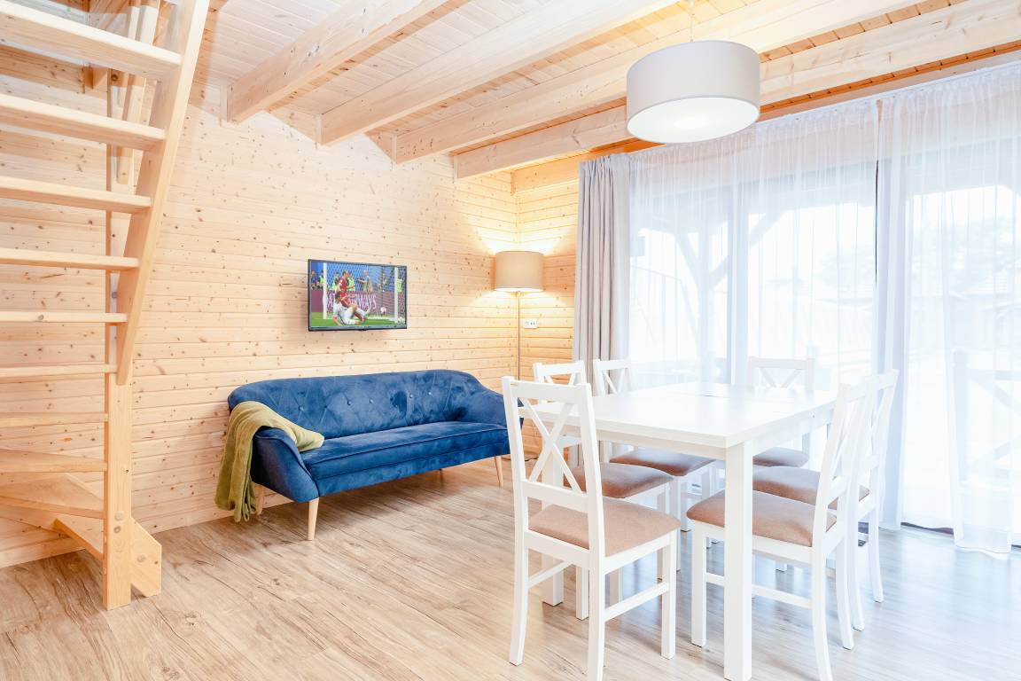 Nebenkosten: Kurtaxe. Bettwäsche vorhanden. Handtücher mitzubringen. Zusätzliche Leistungen: Kostenloser Internetzugang über W-Lan. Pool geöffnet und beheizt vom 01.05. - 4.10.26. 2 Parkplätze/Ferienhaus, jeweils 15 Zl./Tag. Bootsverleih: Juli-August. Kaution 100 €. Kinder Babybett/Hochstuhl nur innerhalb der maximalen max. Personenzahl, jeweils ohne Berechnung (Bestellung). Haustier nicht erlaubt. SUP, Bootsverleih, Fahrradverleih vor Ort gegen Gebühr.Verpflegung in Kantine (geöffnet 1.6. - 23.8.26 ), buchbar vor Ort: Frühstück, Abendessen, Mittagessen oder Vollpension (Gebühr).