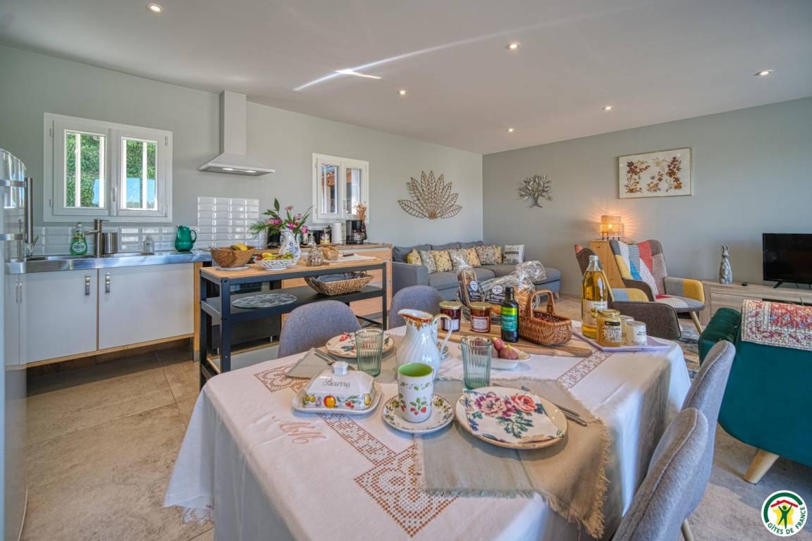 „Nous avons tellement aimé … que nous y retournerons dans 2 semaines pour clore nos vacances ! Hôtes charmants et gîte remarquable. Un havre de quiétude …“