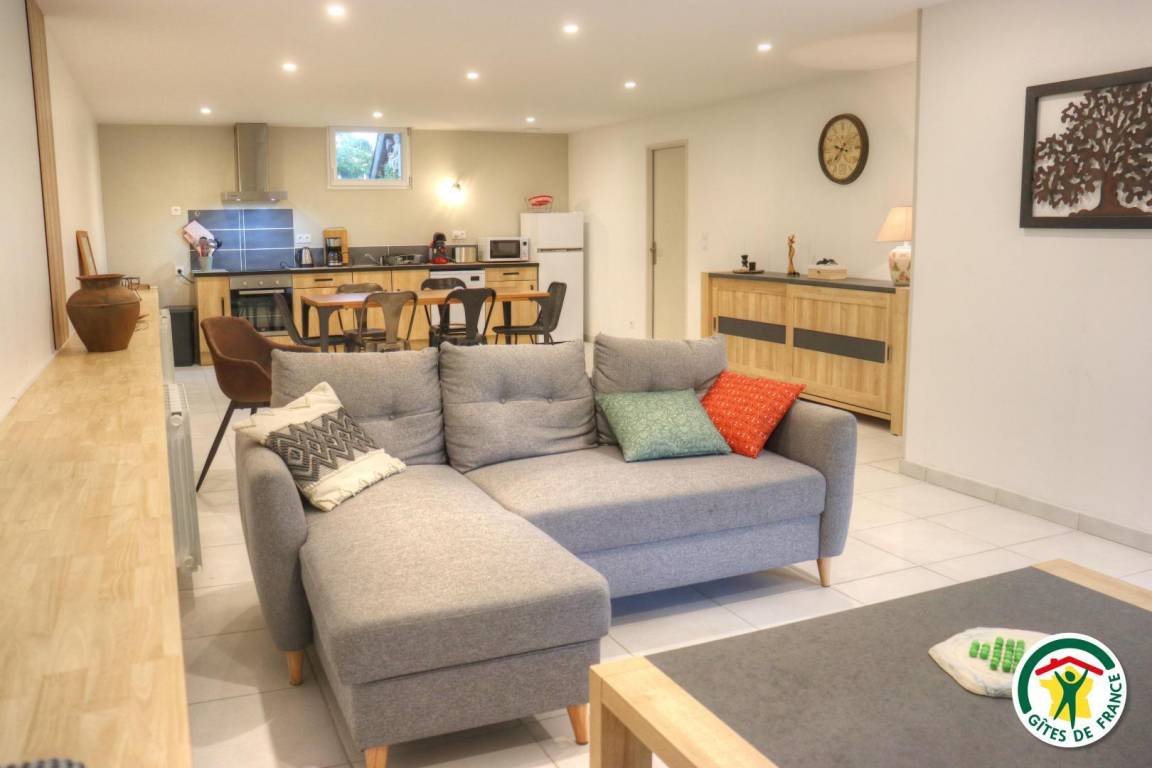 Le Clos des Hirondelles profitiert von schönen Volumina. Es ist wie folgt auf 2 Ebenen angeordnet: im Erdgeschoss großes, langes Wohnzimmer von fast 50 m², das durch das Erkerfenster an die Terrasse angrenzt, separates WC. Obergeschoss: 3 Schlafzimmer (140x190) (140x190) (2x90x190), Badezimmer, separates WC. Draußen: Südterrasse, Parkplatz vor Ort. Die Gîte grenzt an eine andere Gîte, aber die Eingänge sind unabhängig und die Wohnräume im Freien wurden ohne Gegenüber angelegt.