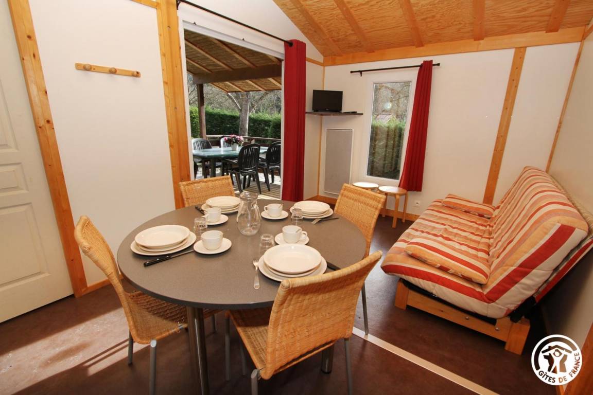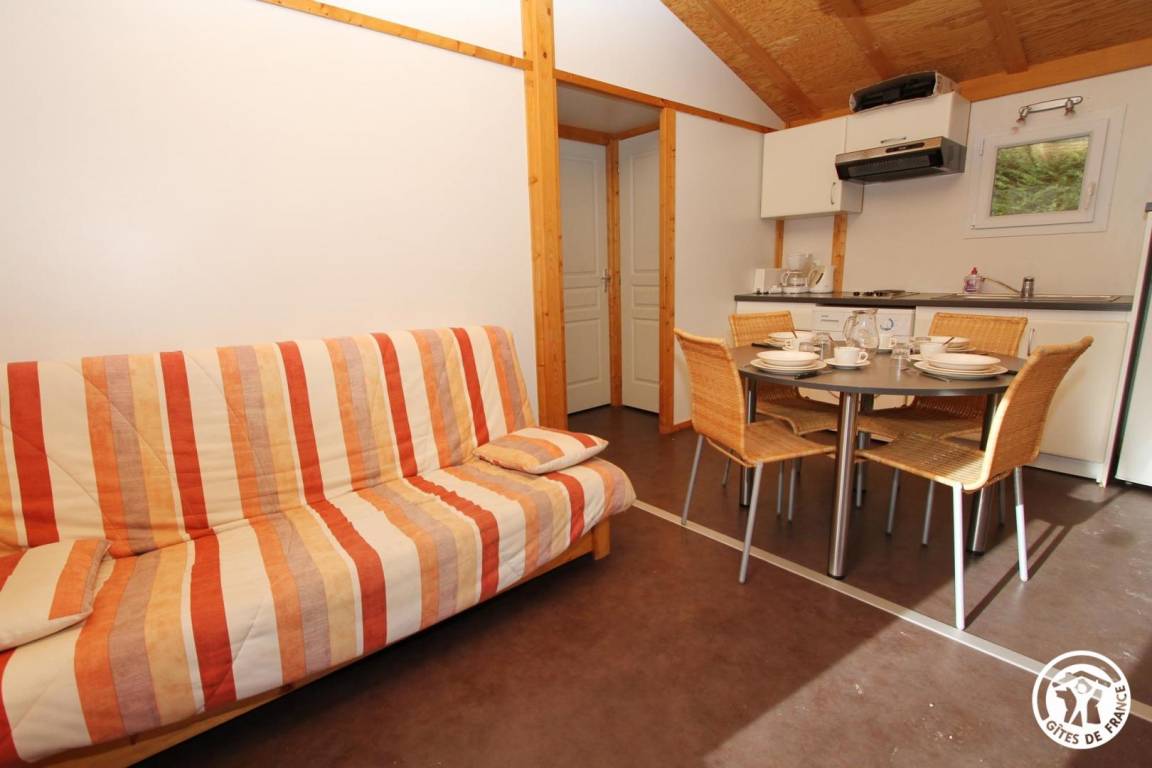 Jedes der 6 frei stehenden 35 m² großen Holzchalets kann bis zu 6 Personen beherbergen. Eines der Chalets ist barrierefrei. Jedes Chalet verfügt über 1 Terrasse, 1 Wohnzimmer mit Küche (Schlafsofa 140 cm), 2 Schlafzimmer (1 Bett 140 cm)(2 Betten 80 cm), Badezimmer und WC. Der Zugang zum Swimmingpool ist im Mietpreis Ihres Chalets inbegriffen.