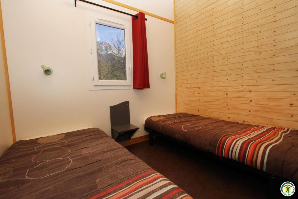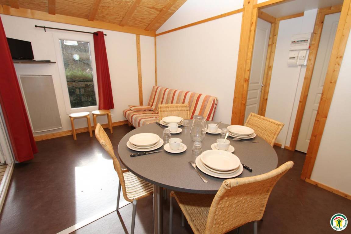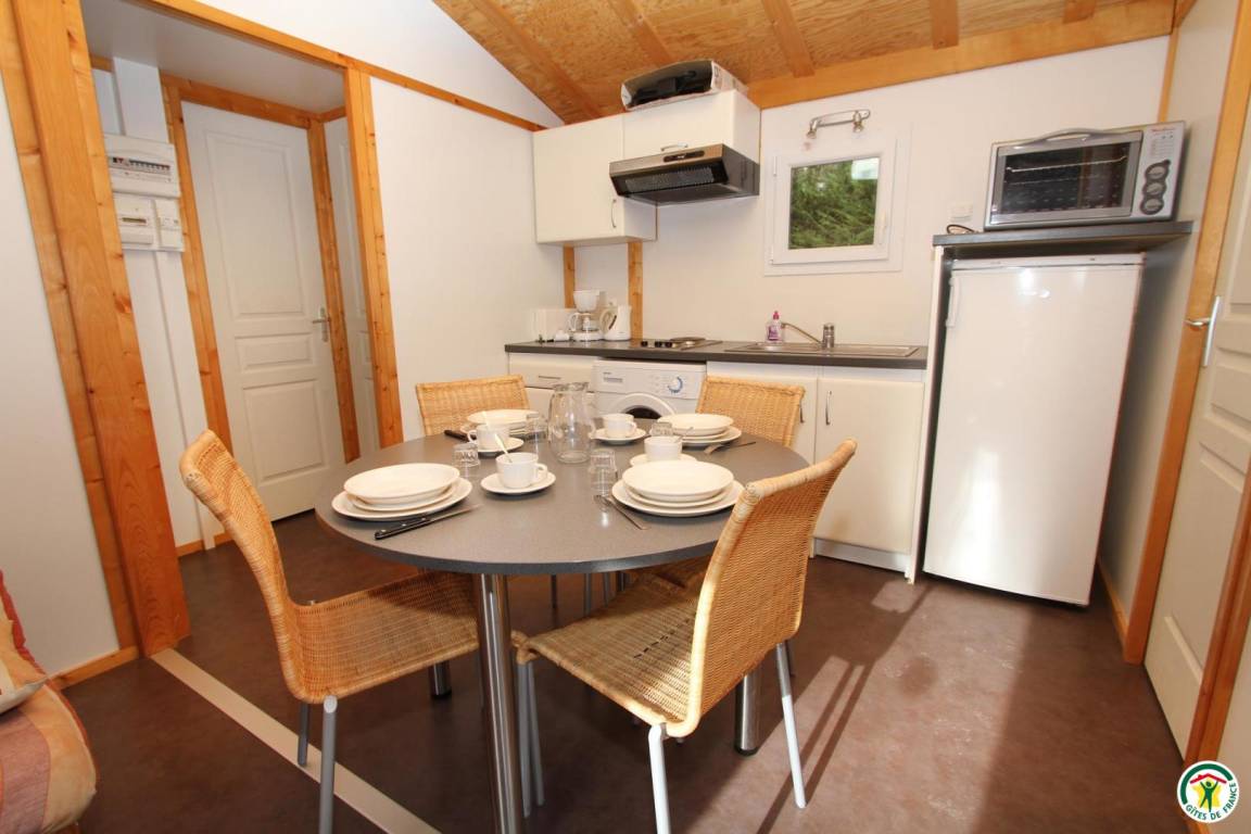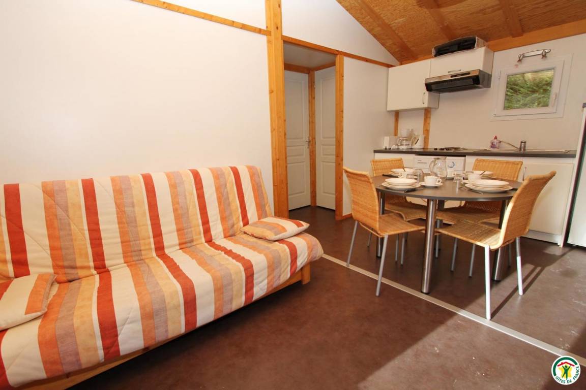 Jedes der 6 frei stehenden 35 m² großen Holzchalets kann bis zu 6 Personen beherbergen. Eines der Chalets ist barrierefrei. Jedes Chalet verfügt über 1 Terrasse, 1 Wohnzimmer mit Küche (Schlafsofa 140 cm), 2 Schlafzimmer (1 Bett 140 cm)(2 Betten 80 cm), Badezimmer und WC. Der Zugang zum Swimmingpool ist im Mietpreis Ihres Chalets inbegriffen.