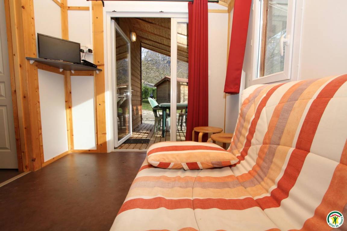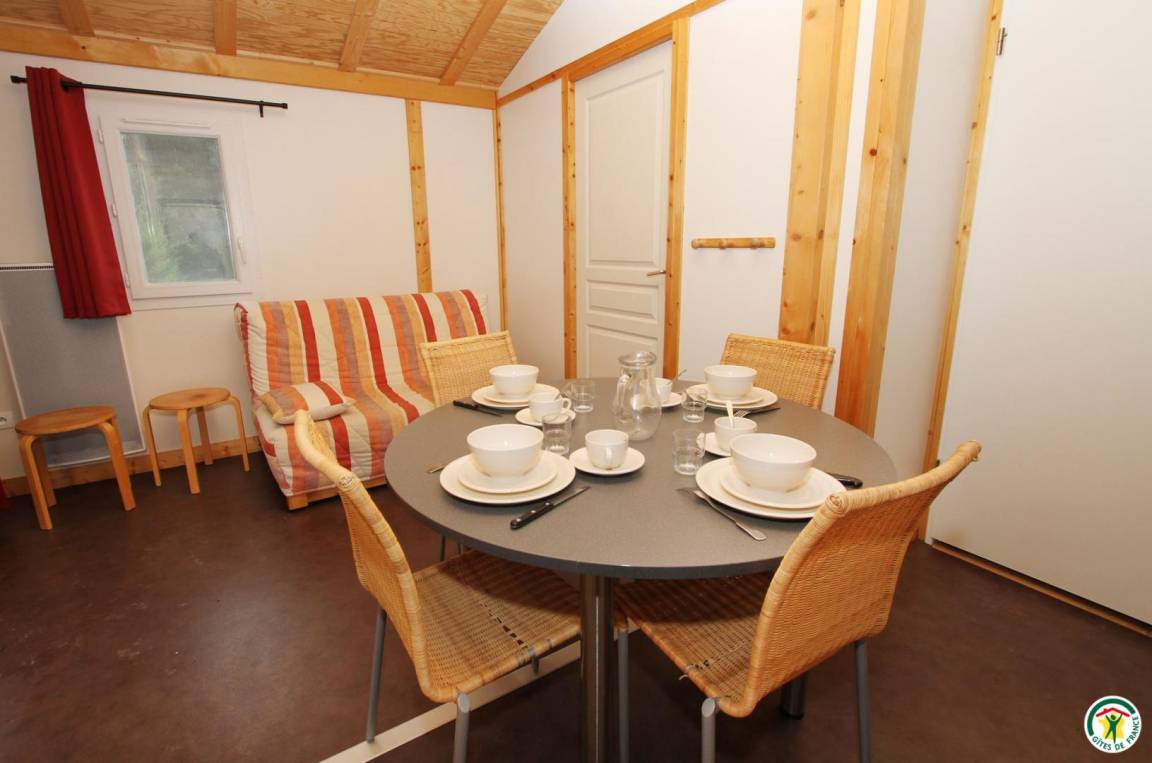 Jedes der 6 frei stehenden 35 m² großen Holzchalets kann bis zu 6 Personen beherbergen. Eines der Chalets ist barrierefrei. Jedes Chalet verfügt über 1 Terrasse, 1 Wohnzimmer mit Küche (Schlafsofa 140 cm), 2 Schlafzimmer (1 Bett 140 cm)(2 Betten 80 cm), Badezimmer und WC. Der Zugang zum Swimmingpool ist im Mietpreis Ihres Chalets inbegriffen.