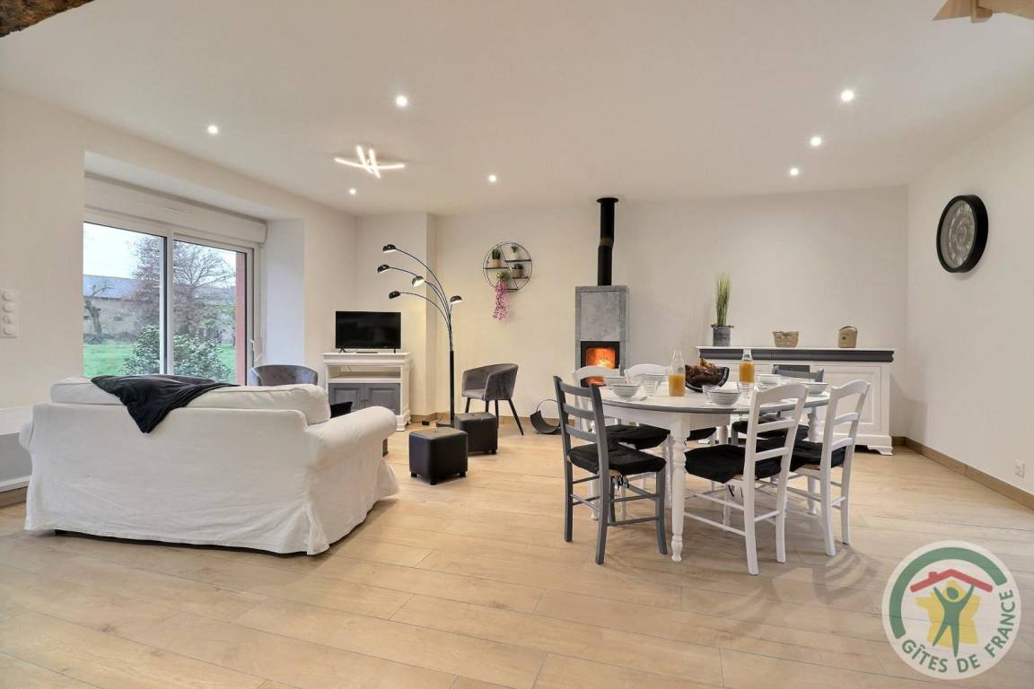 „Maison très appréciable en cette période hivernale Facile à chauffer car très bien isolée et présence d un bon poèle à bois qui laisse entrevoir une belle flamme. Grandes chambres, deux SDB, deux WC. Séjour spacieux et pratique Idéal pour les 6 personnes que nous étions. Nous avons visité Rennes, St Malo et le Mont St Michel“