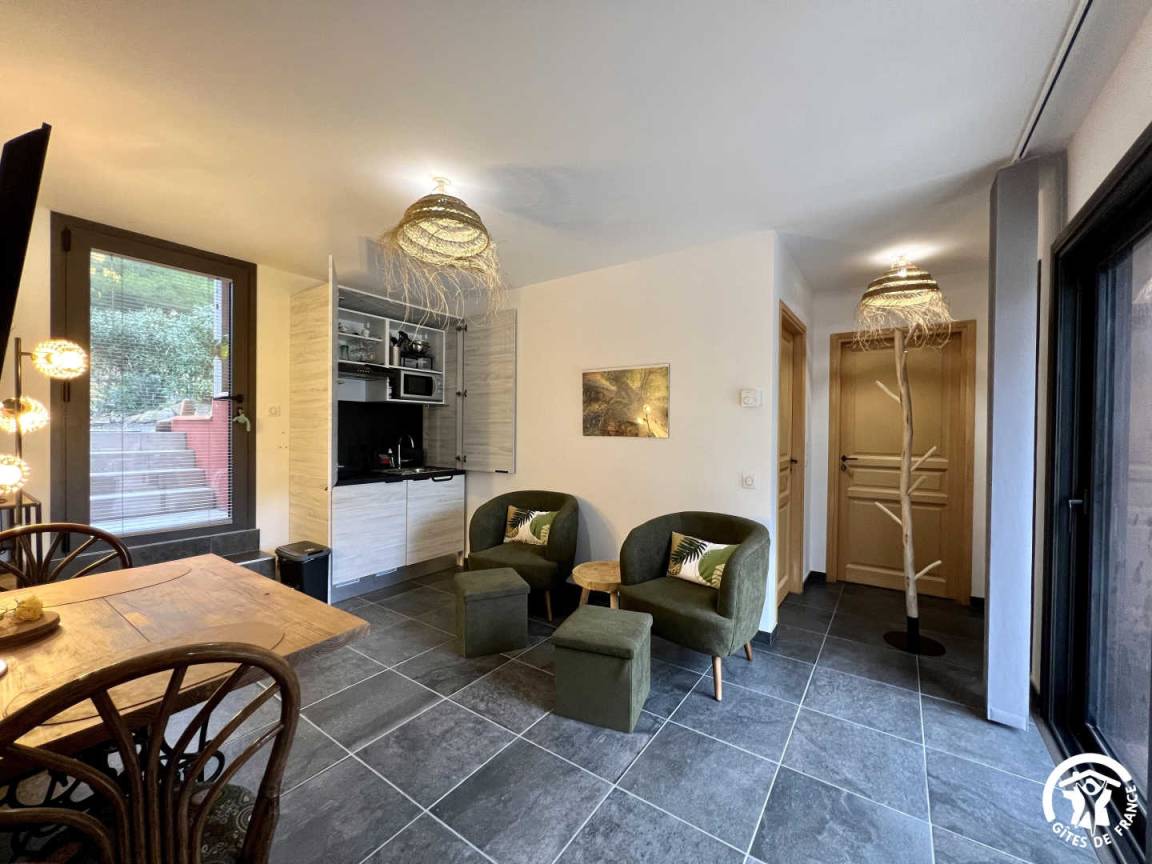 „Très bel appartement de plein pied dans un gîte que nous connaissions déjà. Tout est bien pensé. La déco et les matériaux sont de belle qualité. Logement neuf. Le mas rojac est un endroit en dehors du temps, paisible, reposant. Les propriétaires sont à l'écoute et prêts à rendre service. L'environnement dans les vignes, les balades aux alentours, tout est charmant. Seul bémol, il fait vite très chaud dans l'appartement. Les grandes baies vitrées offrent une magnifique vue sur la terrasse mais évidemment cela chauffe vite.“