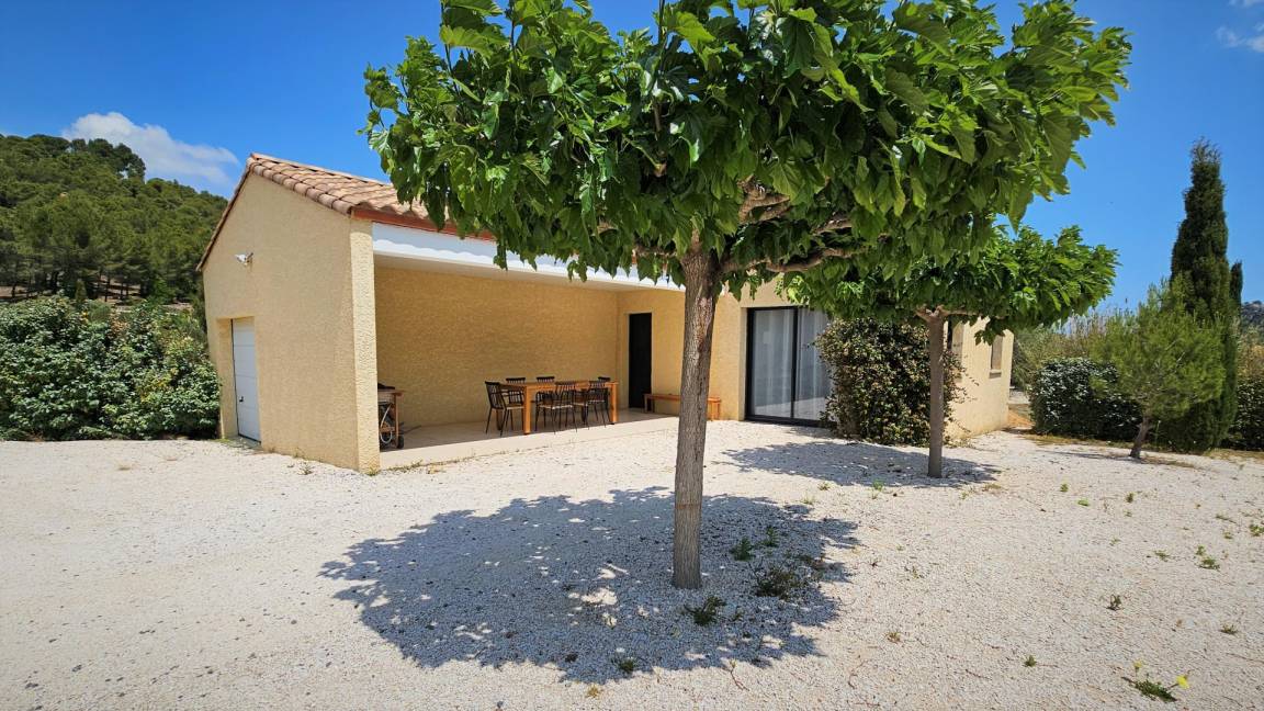 Ferienhaus mit Blick Süden auf einem Pinienwald, mit überdachter Terrasse 20 m ², Gartenmöbel und Grill. Wohnzimmer - Küche-Bar, 3 Schlafzimmer mit 2 Betten, 140 und 2 Betten 90 und 1 Baby, SE, wc. Garage für Kleinwagen. Haustiere sind bedingt erlaubt. Zusätzliche elektrische Heizung.