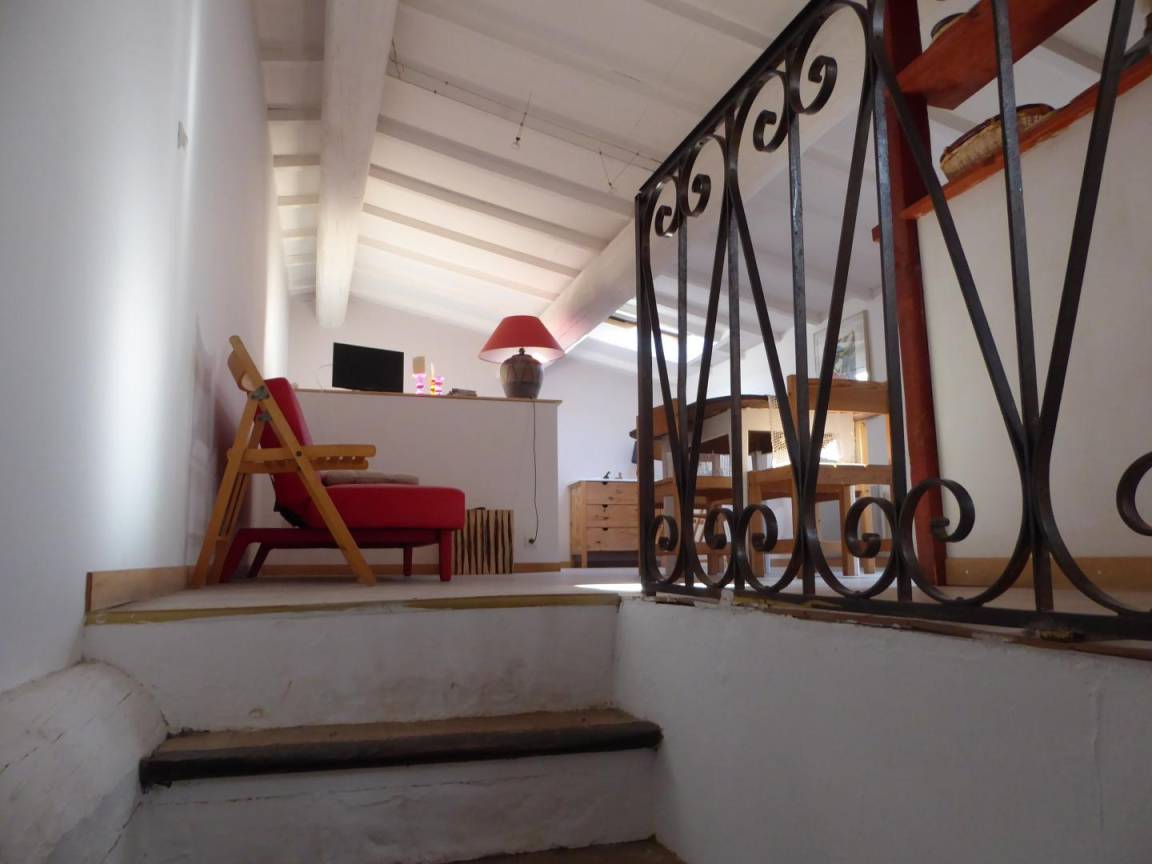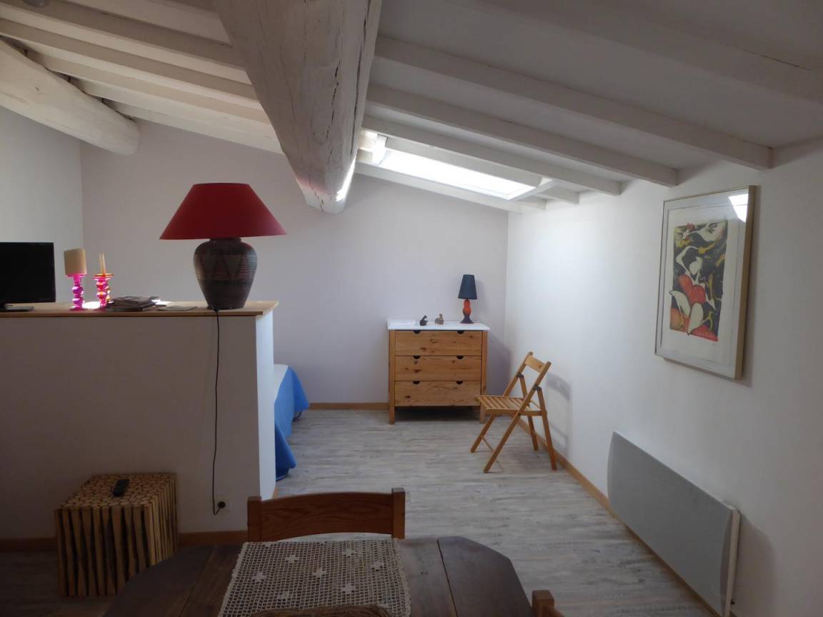 Erdgeschoss: Eingangshalle mit wc und Treppe ein Mansardenzimmer mit Wohnzimmer (TV) mit Küche-Bar im Obergeschoss weitergehen. Auch getrennte Schlafzimmer (1 Bett für 2 Personen-1 Bett 1 Person). Wasser-Zimmer. Zusätzliche elektrische Heizung. Waschmaschine.