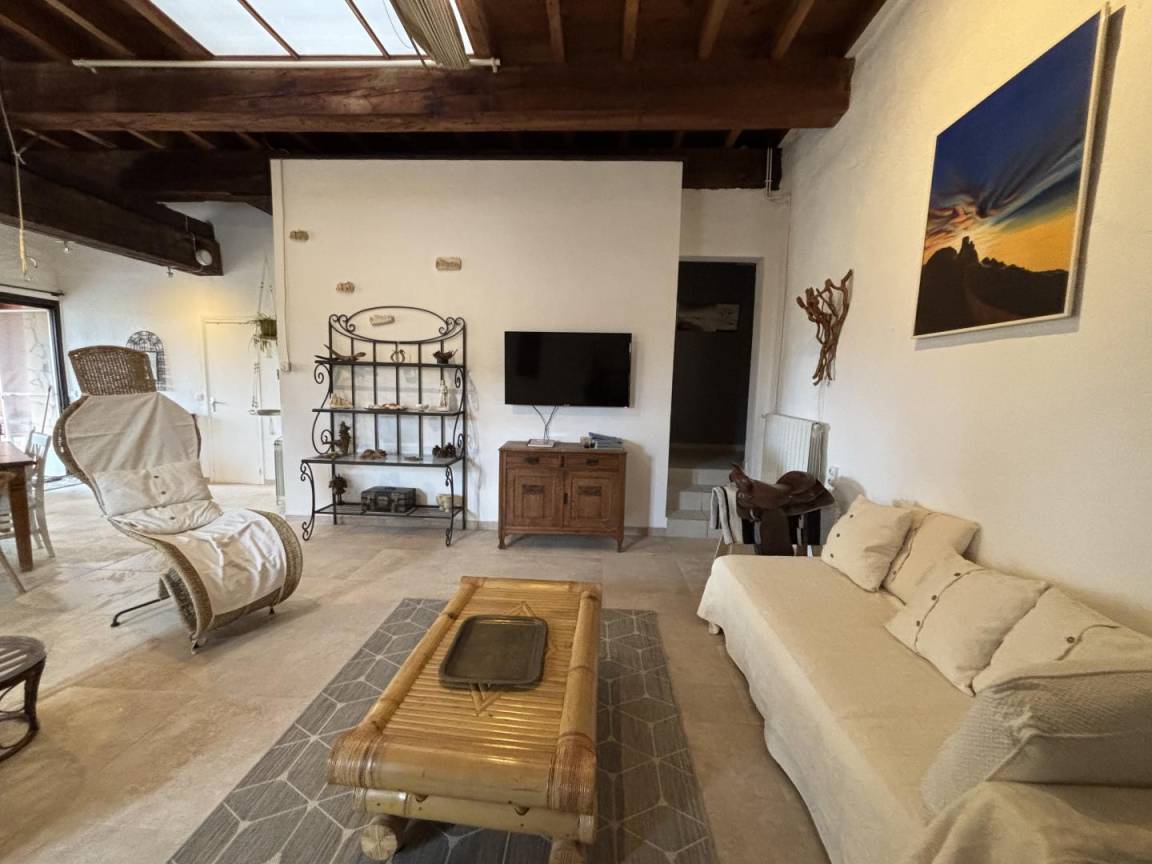 Großes Wohnzimmer mit Blick auf die Terrasse, Kamin, (Schlafcouch 2 Pers)-TV-DVD-HIFI-Anlagen und WLAN. Separate Küchenzeile-Bar. Bad - wc. 2 Schlafzimmer (2 Betten 90 und 1 Bett 140). Zentralheizung, (83 € / Woche). Haustiere außer Katzen. Bevorzugte Tarifkunden kontaktieren Sie uns bitte. Reinigung von 40 € und Bettwäsche 8 € auf Anfrage.