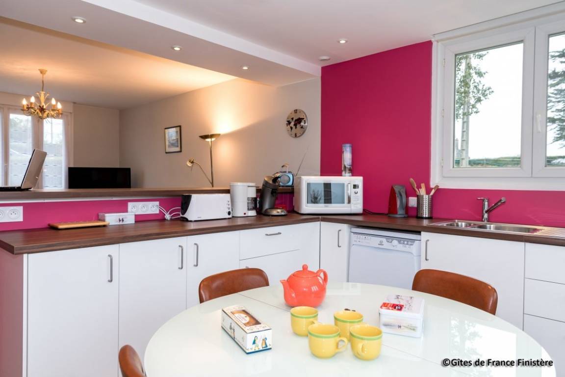 „Wir haben 4 wunderbare Tage in diesem schönen Gite verbracht. Alles war sehr sauber, praktisch und hoch funktional. Von allen Zimmern und dem herrlich großen Garten hat man einen Traumblick in die umgebende Heidelandschaft oder auf die Rade von Brest, die schönsten Sonnenuntergänge inklusive. Die Vermieter sind sehr nett und hilfsbereit und haben uns mit tollen Ausflugs- und Restauranttips versorgt. Das Haus ist extrem sauber und gepflegt und hervorragend ausgestattet. Alle Geräte in Küche und Bad sind neu und funktionieren hervorragend. Wir haben uns rundum sehr wohl gefühlt, auch der Hund konnte prima im Garten spielen. Der Küstenwanderweg GR 34 beginnt übrigens nur ca. 100m hinter dem Haus. Wir würden definitiv wiederkommen. Vielen Dank für Alles, auch für die Professionalität von „Gite de France“!“