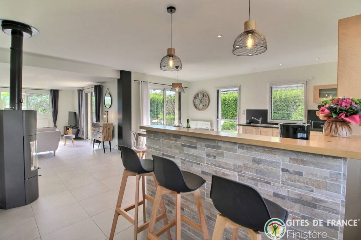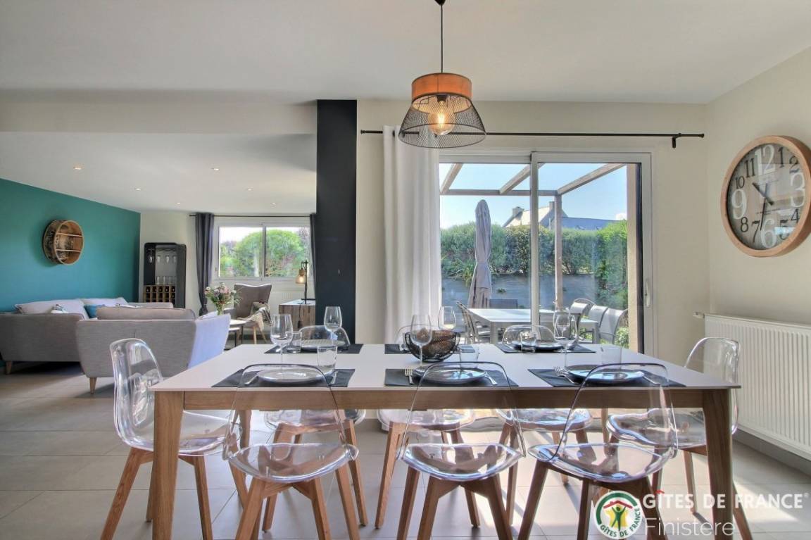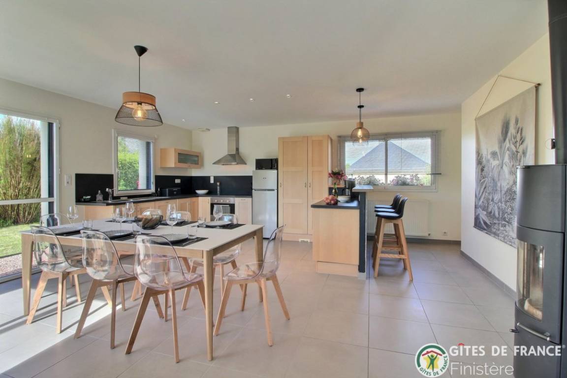„Gîte très bien placé, calme, bien décoré, très propre. On s'y sent bien dès l'arrivée. Temps magnifique en Bretagne. Très bonnes vacances. Gîte à louer sans hésitation.“