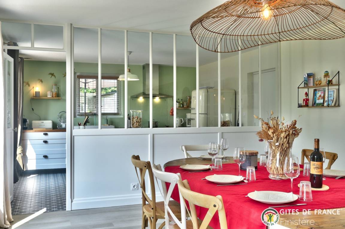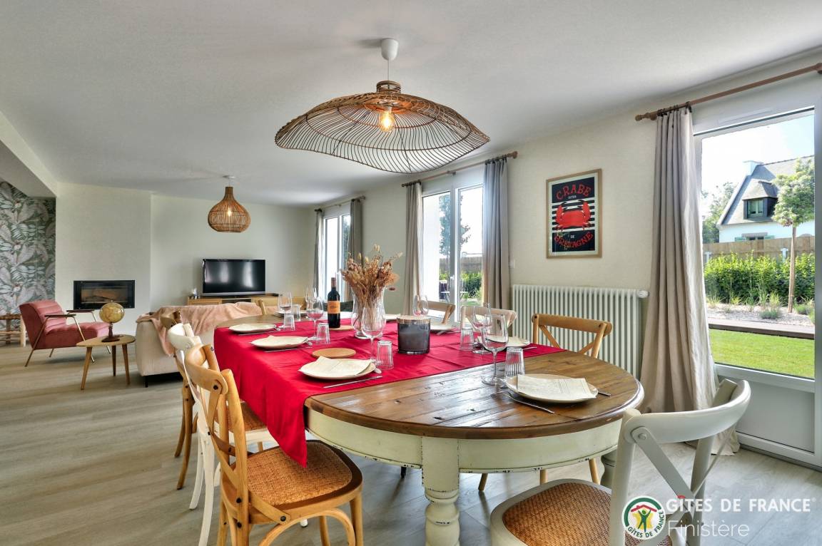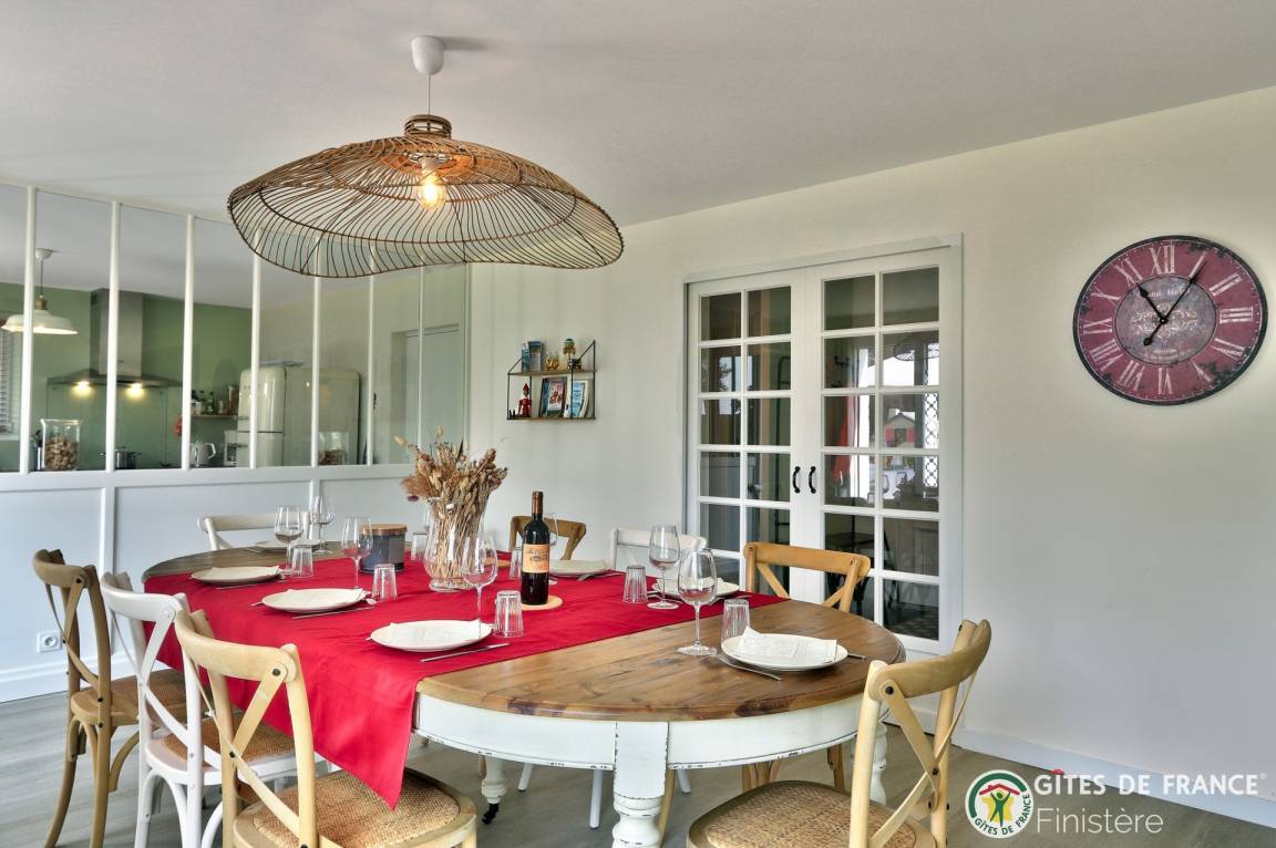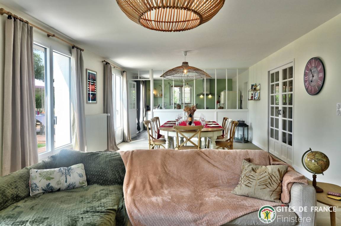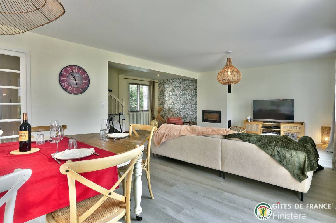 „Semaine familiale sous le beau soleil Breton ! Le gîte est lumineux et spacieux pour huit personnes, et bien fonctionnel dans l'ensemble. Nous avons cependant indiqué que la vaisselle pourrait être complétée de quelques plats de service. Jardin, terrasse et barbecue au top pour profiter d'une météo idéale. Merci au propriétaire pour son accueil. Nous garderons un excellent souvenir de se séjour de 10 jours dans une région fort agréable.“