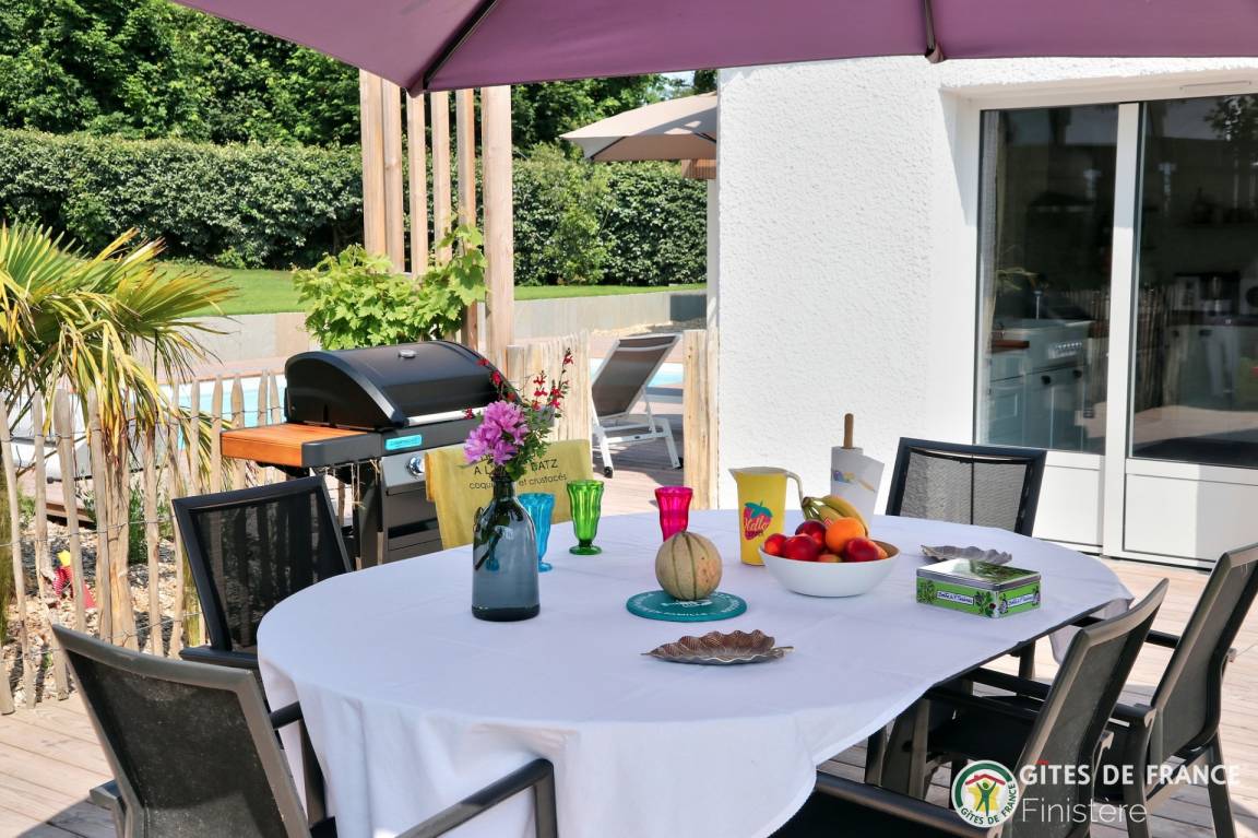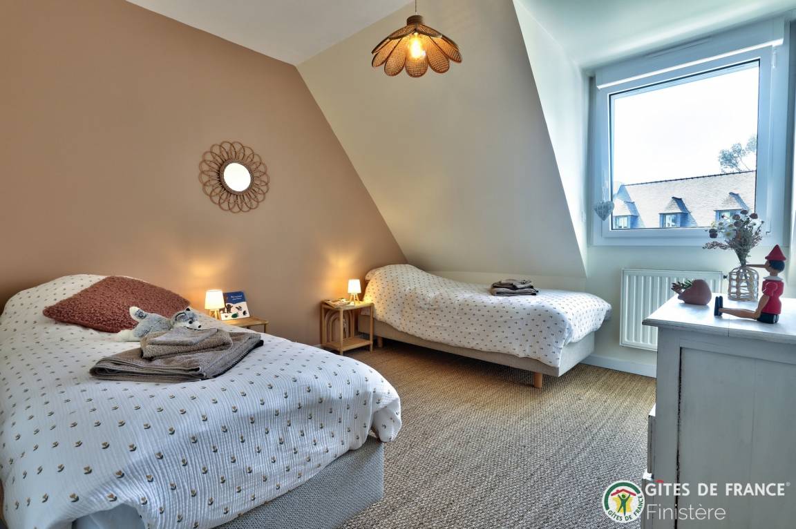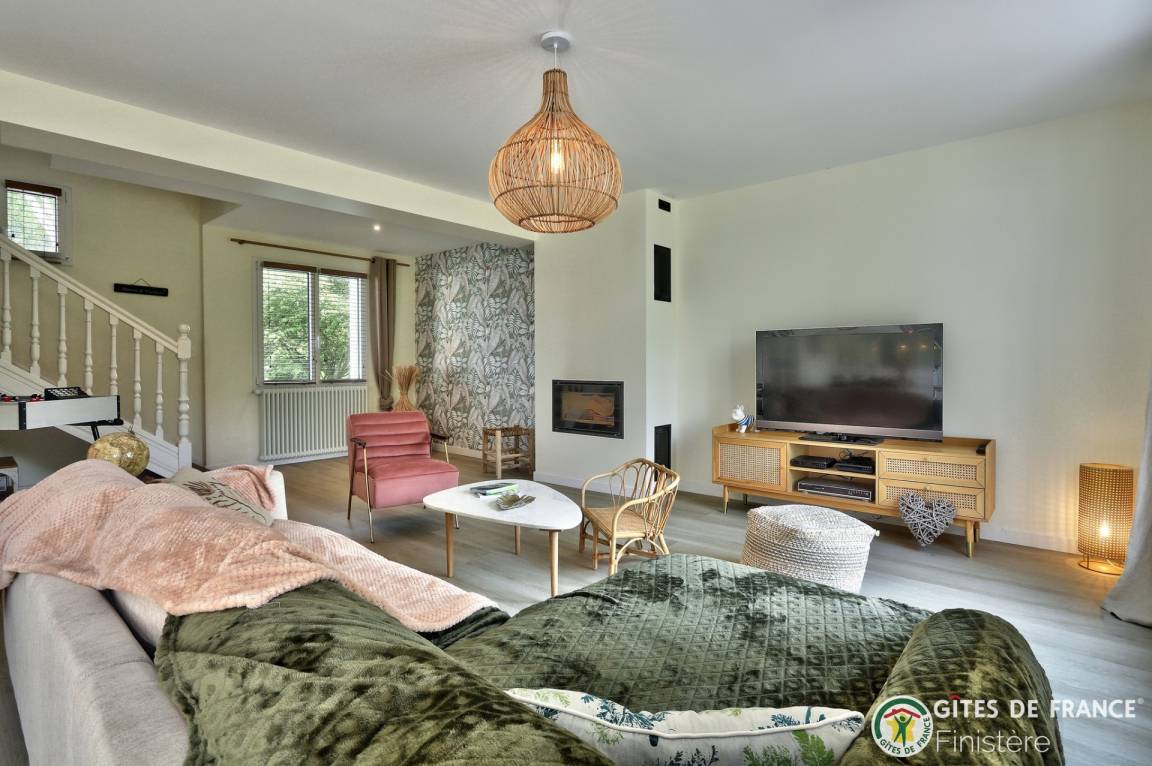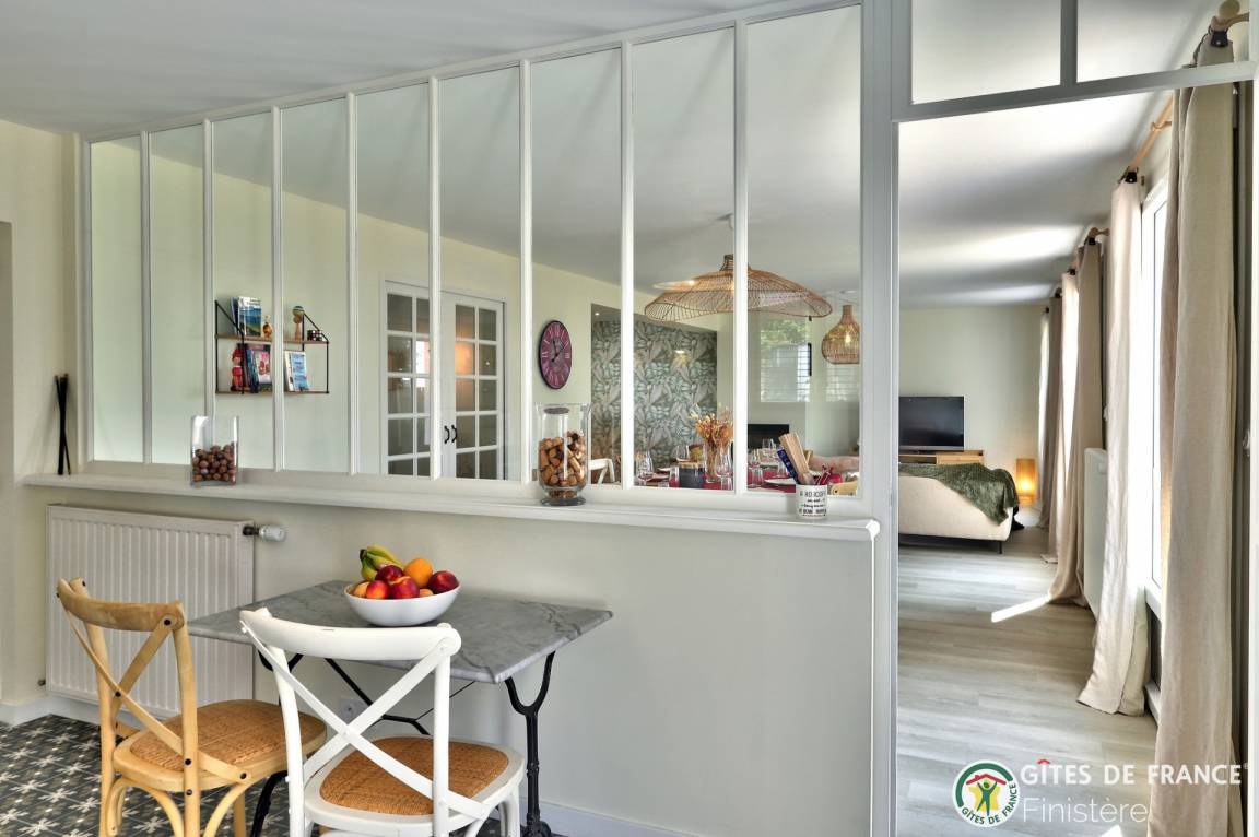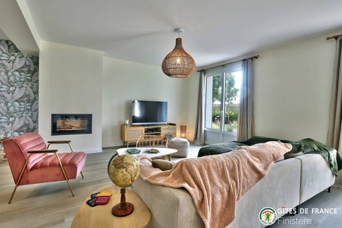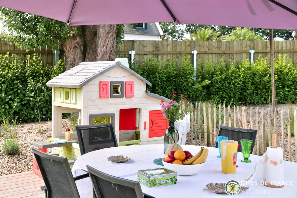 „Semaine familiale sous le beau soleil Breton ! Le gîte est lumineux et spacieux pour huit personnes, et bien fonctionnel dans l'ensemble. Nous avons cependant indiqué que la vaisselle pourrait être complétée de quelques plats de service. Jardin, terrasse et barbecue au top pour profiter d'une météo idéale. Merci au propriétaire pour son accueil. Nous garderons un excellent souvenir de se séjour de 10 jours dans une région fort agréable.“