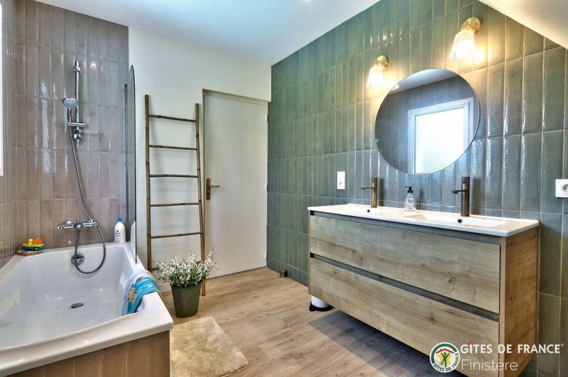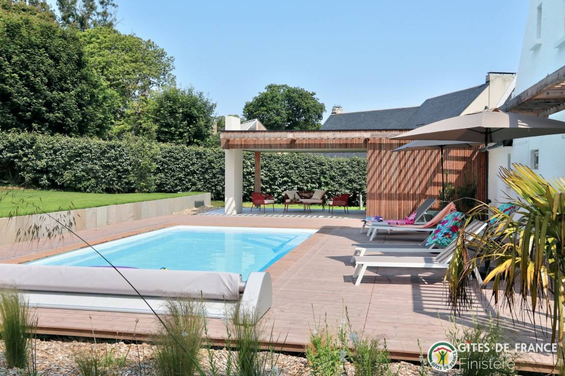 „Superbe maison de vacances idéalement située sur les hauteurs de Roscoff dans un secteur au calme et proche de toutes commodités. La maison ainsi que le jardin ont été refaits complètement et récemment; tout est décoré avec goût dans un esprit « maison de vacances ». Il y a des jeux pour les enfants et des vélos mis à dispo. On s’y sent bien tout de suite. On y a donc passé un très bon moment entre amis et avec les enfants; nous étions 7. C’est spacieux et on ne se marche pas dessus. On a bien profité de la piscine chauffée par la pompe à chaleur et des grandes terrasses au milieu du parc arboré. Idéal pour apéro et BBQ. Rien ne manquait au niveau de l’électro ménager, les chambres et Sdb nickel…. La seule difficulté que nous avons rencontré a été celle de partir après 1 semaine parfaite !“