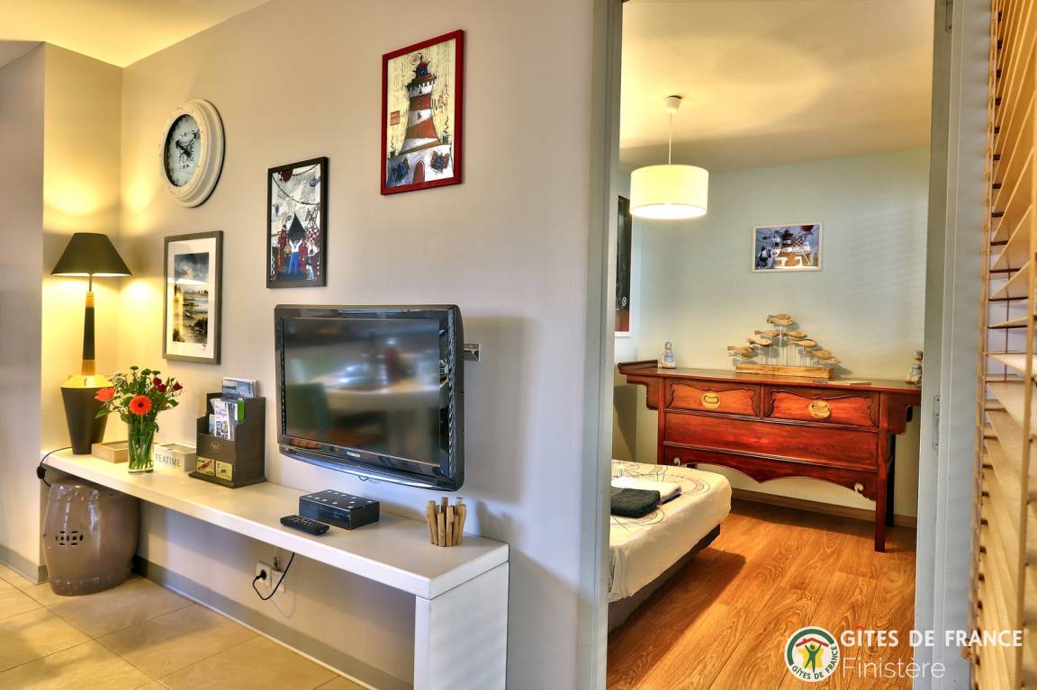 „Sehr schöne moderne Wohnung, ansprechend gestaltet, individuell. Blick in den Garten. Der Gastgeber ist freundlich und unaufdringlich. Wir haben uns wohl gefühlt. Roskoff ist eine nette kleine Stadt. Schönes Flair im Zentrum.“