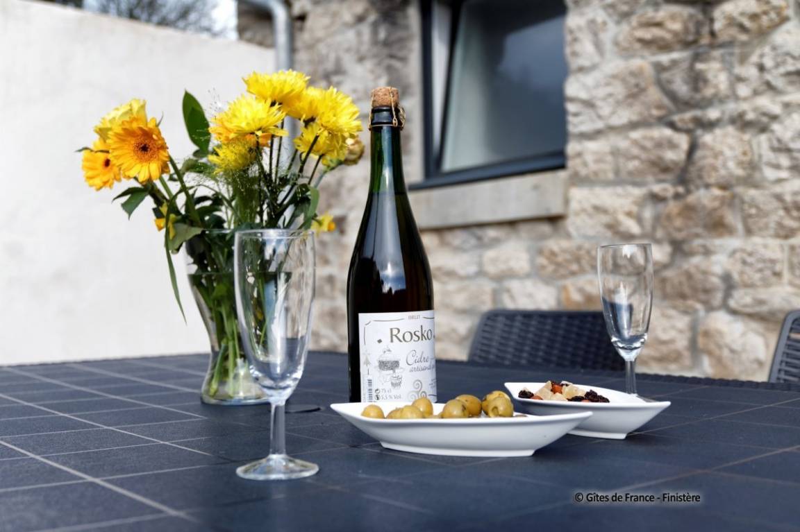 „Super séjour à Roscoff. Gite bien situé, super propre, bien agencé, parfait pour notre chien avec un grand parc fermé. Un petit bouquet de fleurs et un panier de légumes en guise de accueil.“