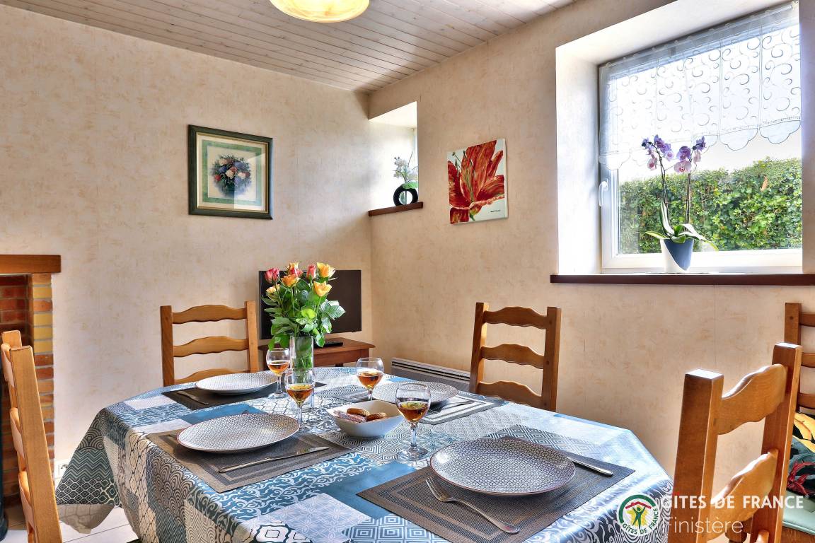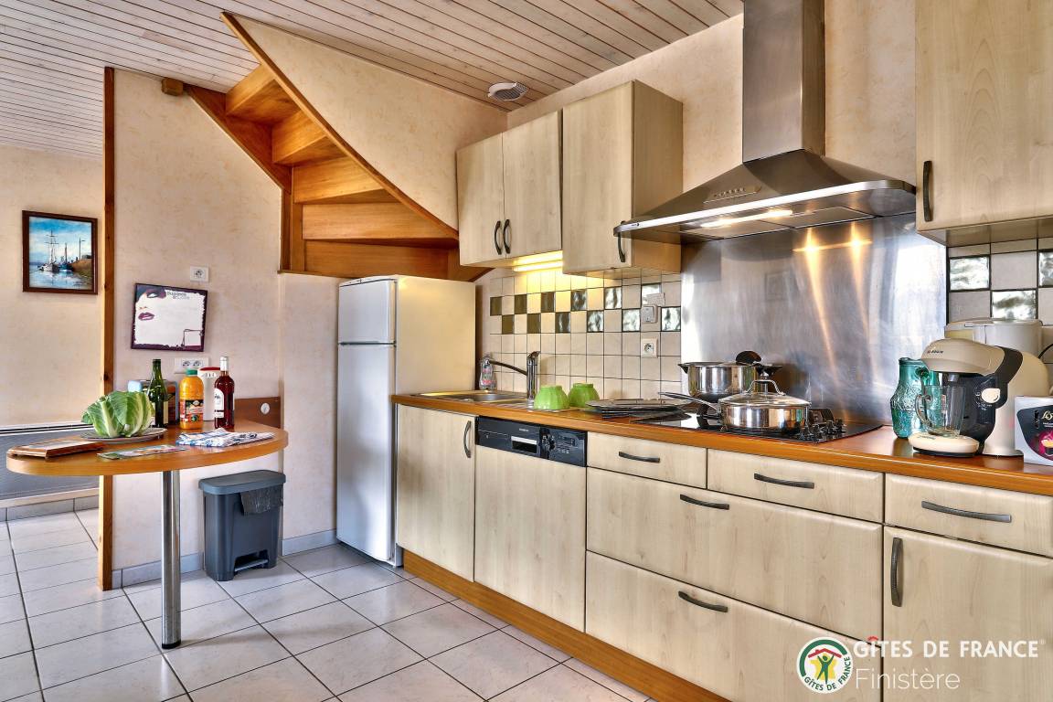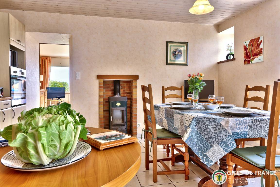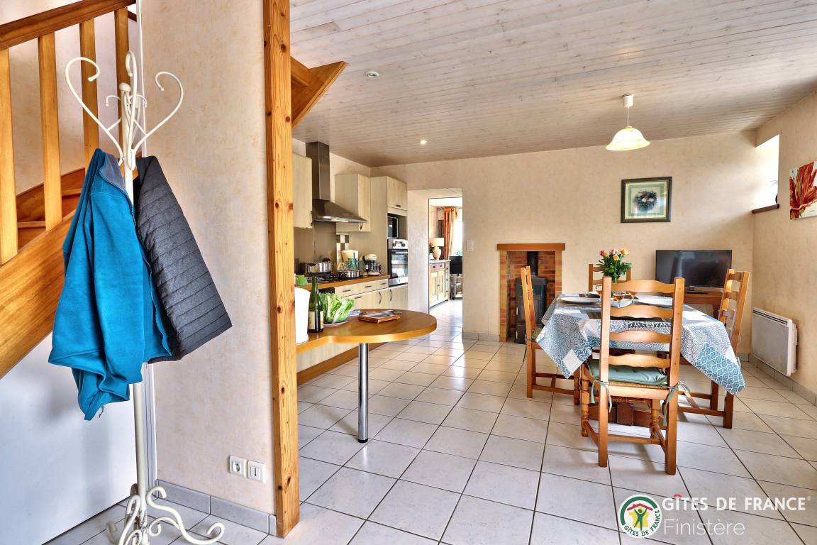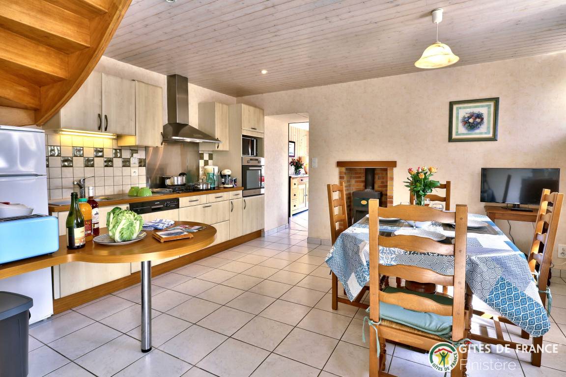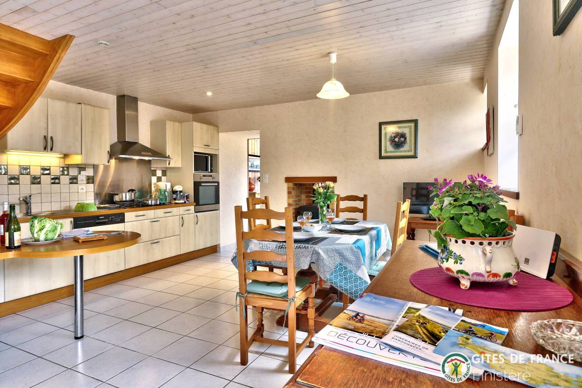 „Gîte bien situé, au calme entre les champs, bien équipé au niveau de la cuisine, avec de beaux espacesvue sur les mats du port de RoscoffSalle à manger lumineuse, spacieuse, confortablejardin agréable à l'abri du vent“