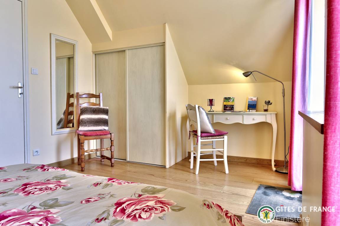 „Accueil très chaleureux, en toute simplicité par la propriétaire, malgré le retard!Ce gîte est un gîte d'exception grâce à son environnement savamment fleuri, incroyablement calme sans voisin immédiat, vue dégagée à 180°, très belle plage de La grande grève à 500 mètres, un supermarché à 7 minutes en voiture, beaucoup de choses à faire dans un faible rayon en voiture, à commencer par la visite de Saint-Pol de Léon, sa baie et son littoral, sans oublier le côté pratique et confortable de l'intérieur du gîte. Nous sommes repartis comblés, reposés. Nous remercions encore la propriétaire pour son accueil, mais aussi pour ses présents, y compris la veille de notre départ.“