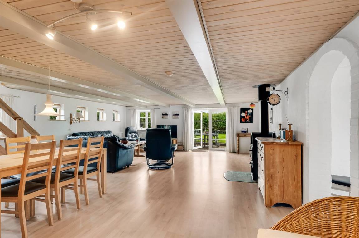 DraußenDie Ferienunterkunft liegt auf einem 1000 m² großen Gartengrundstück. Die Entfernung zum Fjord beträgt 300 m. Die nächste Einkaufsmöglichkeit liegt 4000 m entfernt. In einem Abstand von 7000 m gibt es einen Golfplatz. Es steht ein 80 m² Terrassenareal zur Verfügung. Geräteraum. Sandkasten.Es steht eine Garage zur Verfügung. Parkplatz auf dem Grundstück.