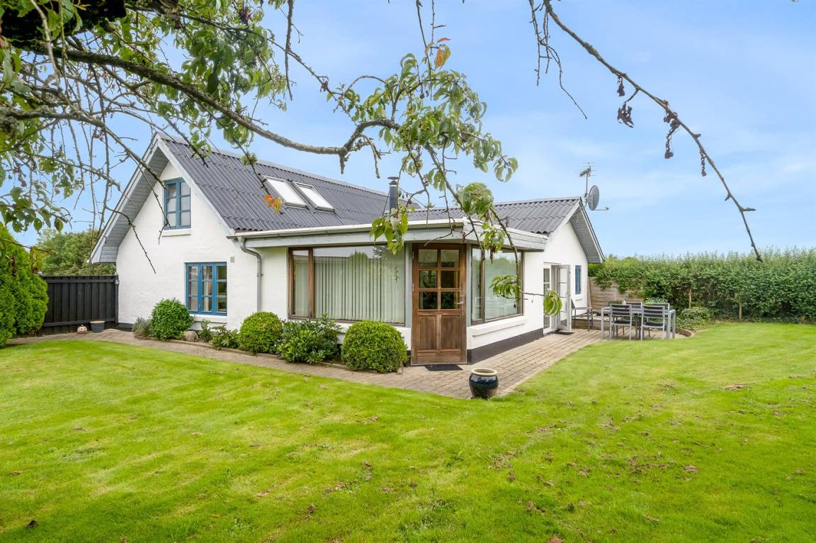 Gemütliches Ferienhaus in hübscher Umgebung nur 300 m vom Fjord und vom schönen Badestrand entfernt gelegen. Das Haus liegt auf einem ungestörten Gartengrundstück, mit Aussicht über den Fjord vom Obergeschoss des Hauses, in einem attraktiven Ferienhausgebiet bei Lyby Strand, ungefähr 10 km von Skive entfernt. Die Schlafplätze verteilen sich auf 1 Schlafzimmer mit Doppelbett sowie 1 Durchgangszimmer mit 2 Einzelbetten im Obergeschoss. Ferner Doppelschlafcouch im Wintergarten.