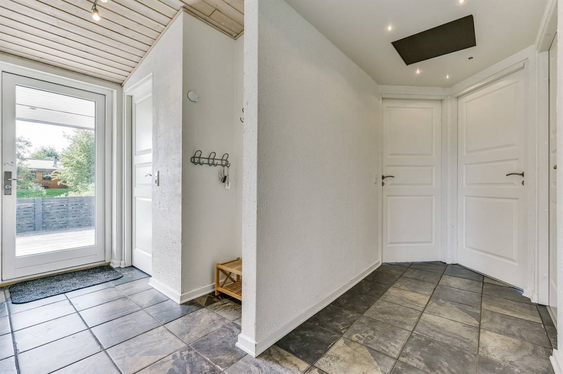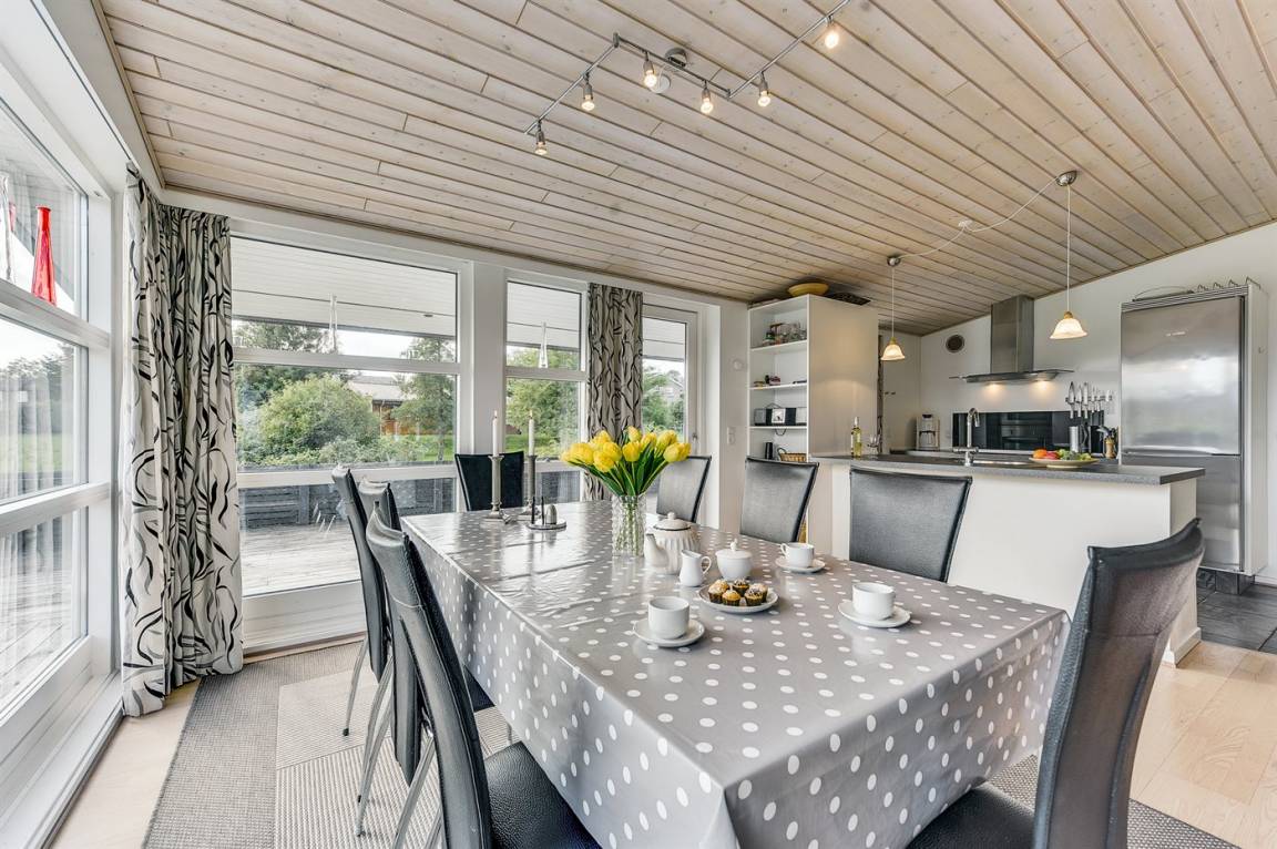 DraußenDie Ferienunterkunft liegt auf einem 1348 m² großen Gartengrundstück. Die Entfernung zum Fjord beträgt 400 m. Die nächste Einkaufsmöglichkeit liegt 3000 m entfernt. In einem Abstand von 20000 m gibt es einen Golfplatz. Es steht ein 86 m² Terrassenareal zur Verfügung. Außerdem gibt es 24 m² überdachte Terrasse. Geräteraum. Schaukel. Sandkasten. Parkplatz auf dem Grundstück.