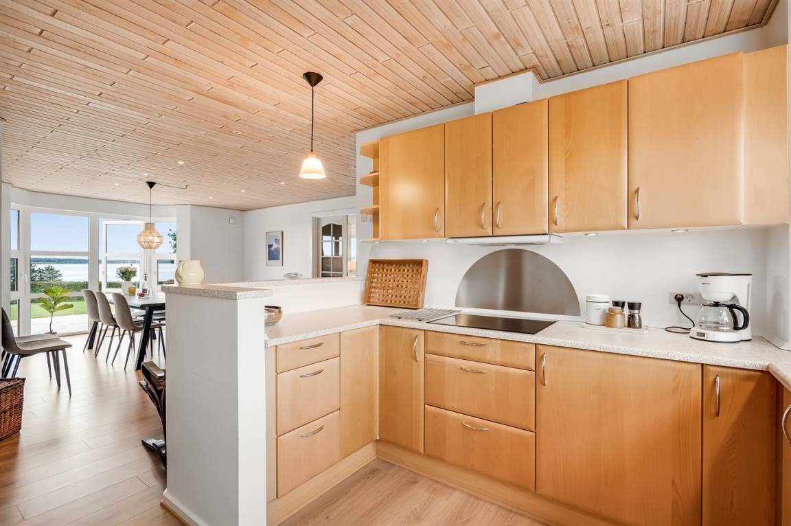 DraußenDie Ferienunterkunft liegt auf einem 2000 m² großen Naturgrundstück. Die Entfernung zum Fjord beträgt 300 m. Die nächste Einkaufsmöglichkeit liegt 6000 m entfernt. In einem Abstand von 4000 m gibt es einen Golfplatz. Es steht ein offenes Terrassenareal zur Verfügung. Geräteraum. Es steht ein Grill zur Verfügung. Parkplatz auf dem Grundstück.