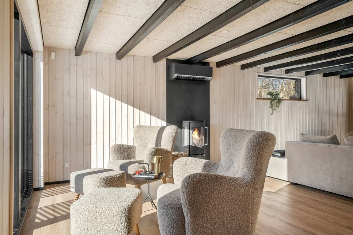 DraußenDie Ferienunterkunft liegt auf einem 3639 m² großen Gründstück, das in einem Wald/Plantage liegt. Die Entfernung zum Meer beträgt 45000 m. Die Entfernung zum Fjord beträgt 500 m. Die nächste Einkaufsmöglichkeit liegt 5000 m entfernt. In einem Abstand von 8000 m gibt es einen Golfplatz. Es steht ein offenes Terrassenareal zur Verfügung. Außerdem gibt es überdachte Terrasse.Lagerfeuerstelle. Windschutzhütte. Es steht ein Grill zur Verfügung. Es ist ein Ladestecker für Elektroautos installiert. Mit einer Ladeleistung von 11 kW. Parkplatz auf dem Grundstück.