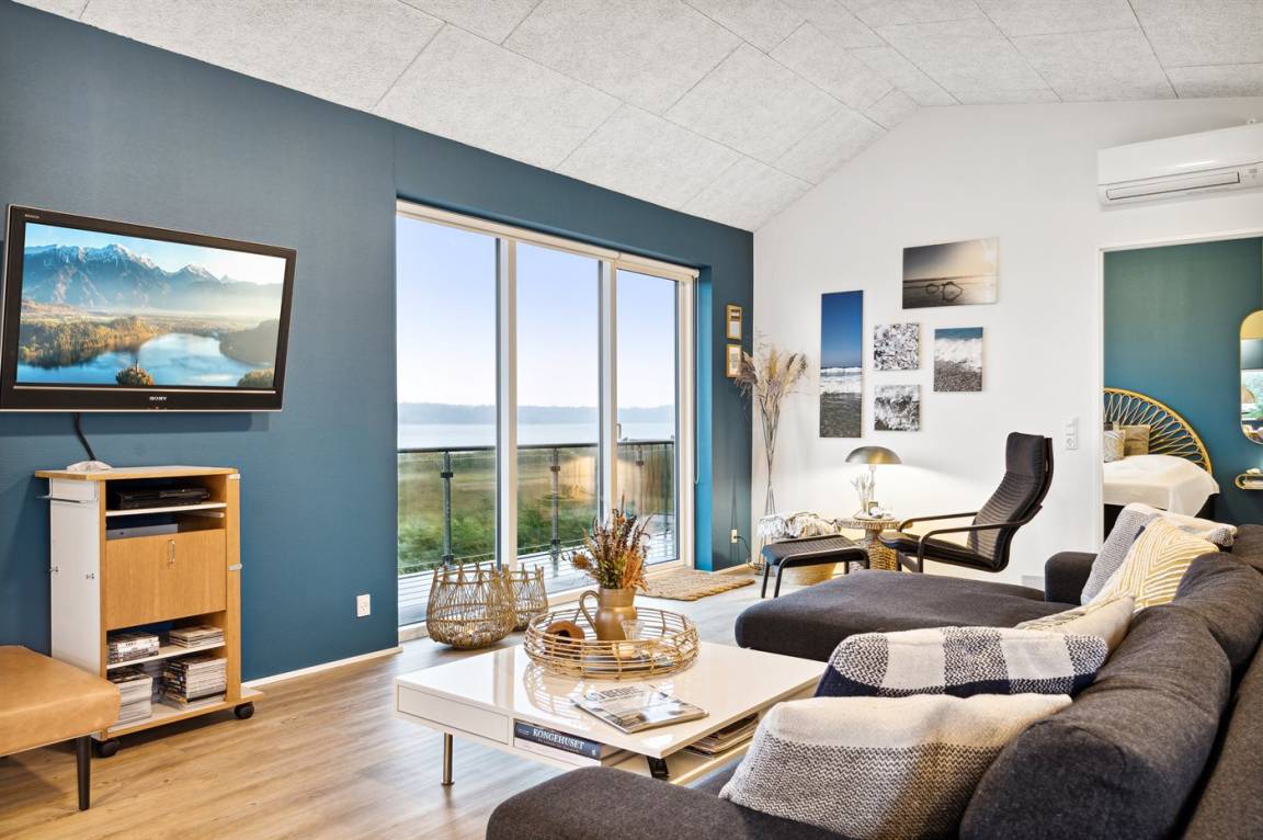Mit einer einzigartigen Lage und mit Ausblick auf den Limfjord, sowohl vom Haus als auch vom Grundstück, findest du dieses schöne und geräumige Ferienhaus.
