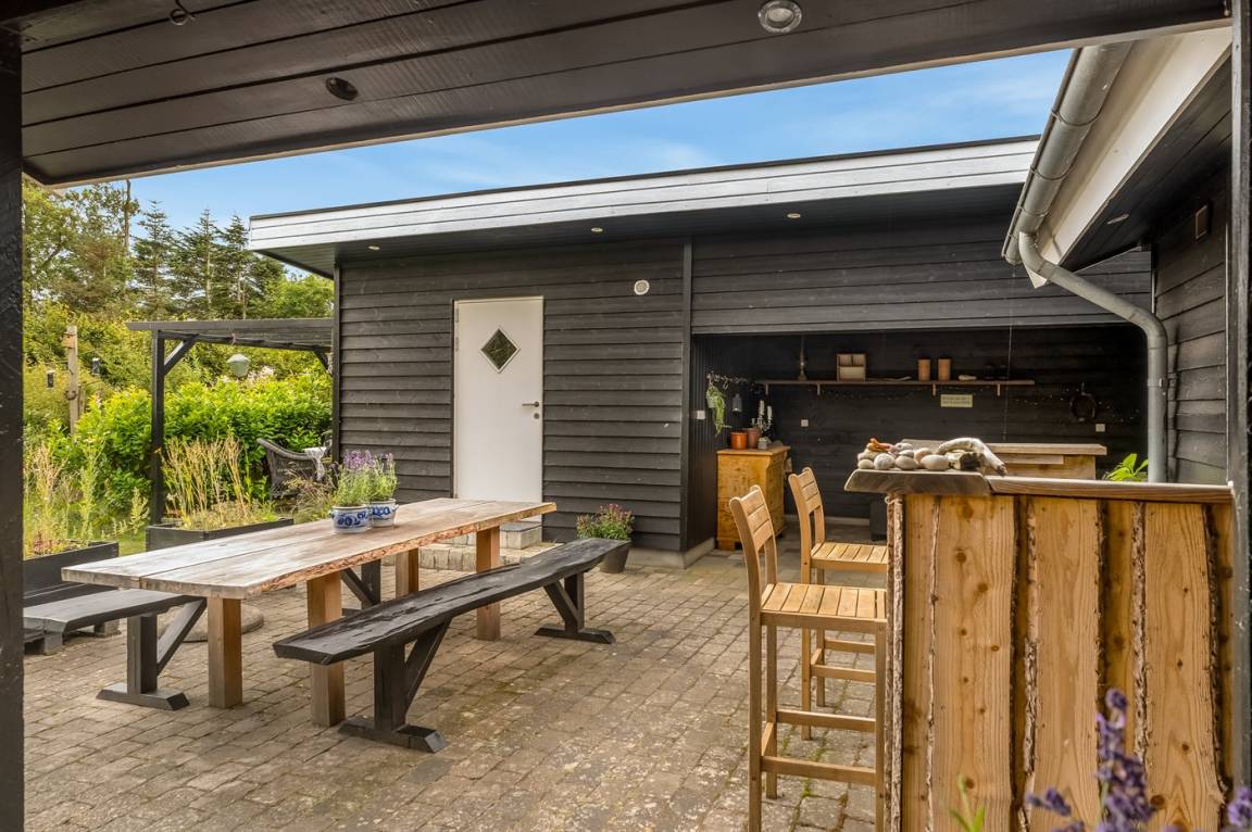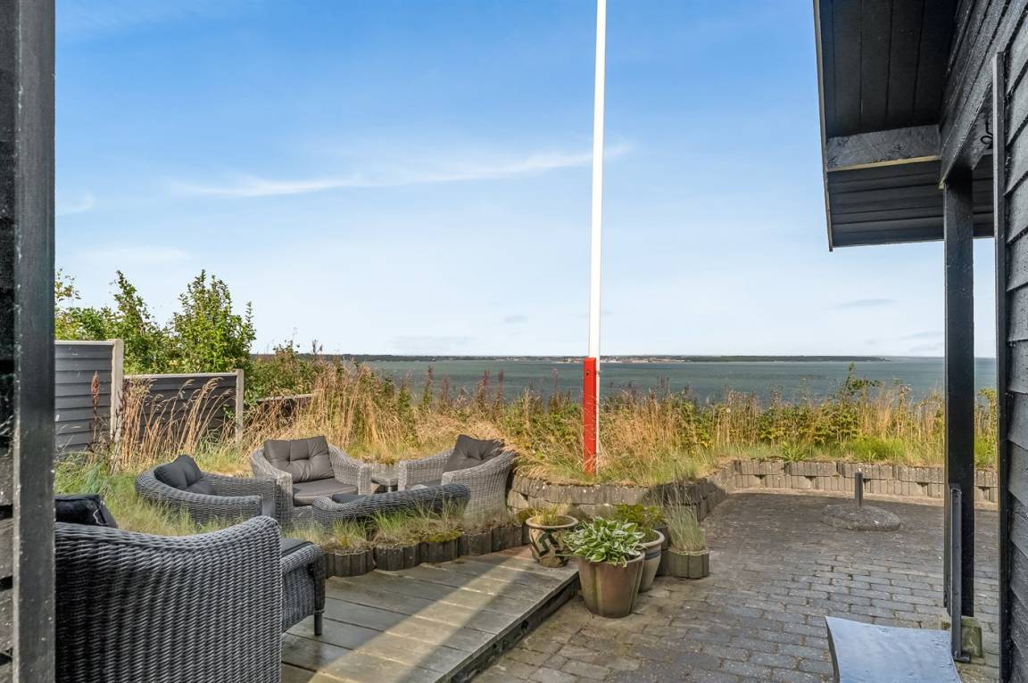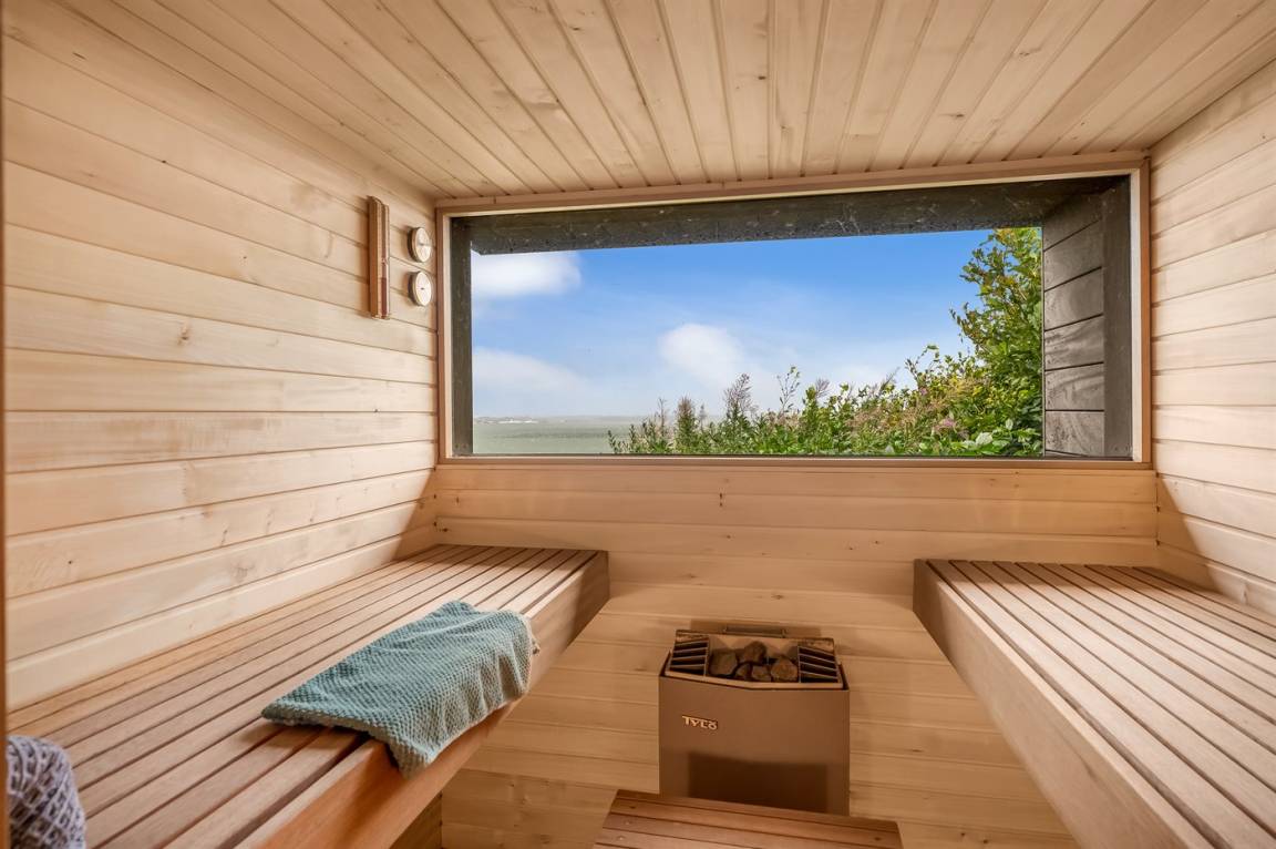 Zum Haus gehören auch schöne Terrassen sowie eine Außensauna, von der aus du ebenfalls den atemberaubenden Blick über den Limfjord genießen kannst.
