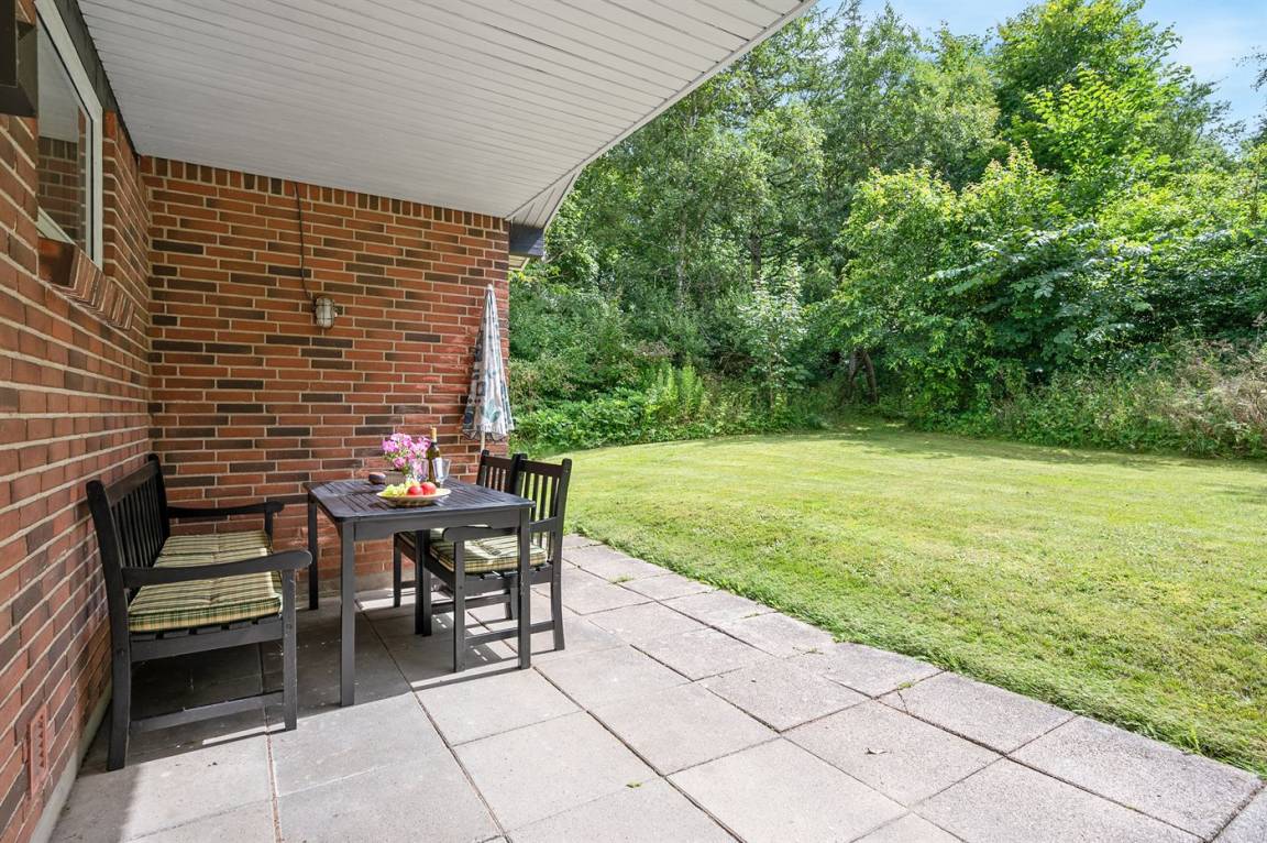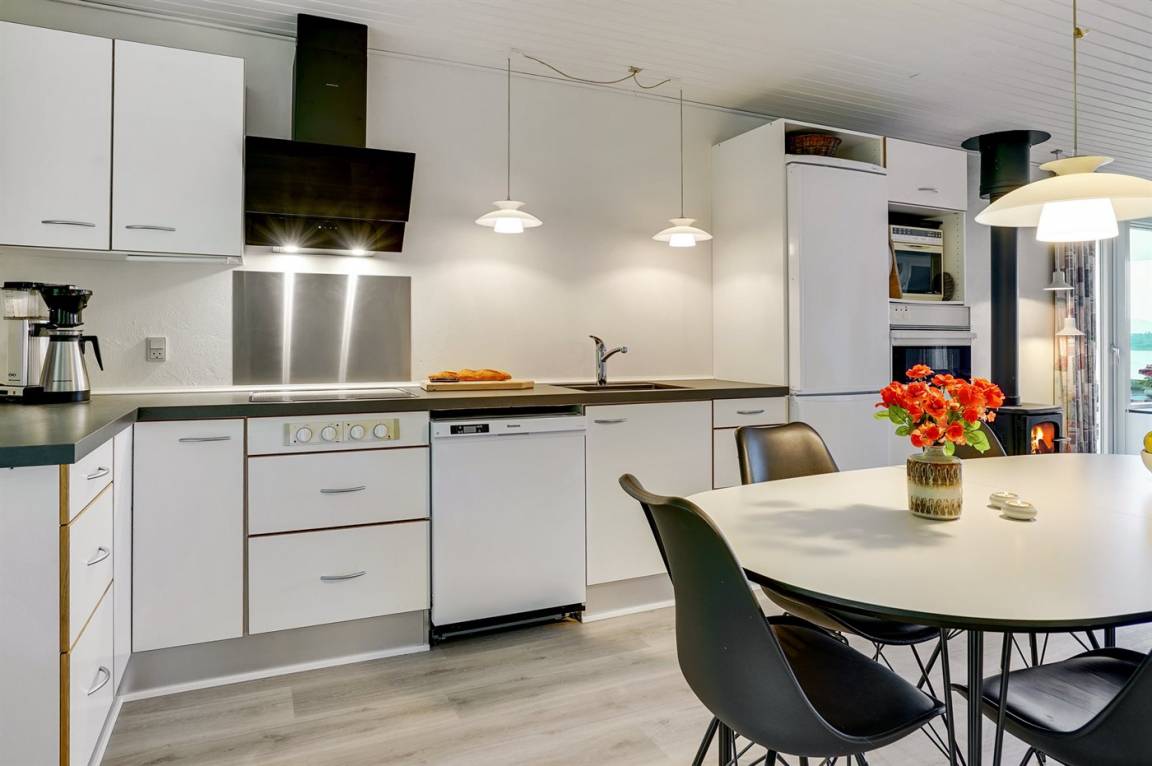 DraußenDie Ferienunterkunft liegt auf einem 5675 m² großen Naturgrundstück. Die Entfernung zum Fjord beträgt 250 m. Die nächste Einkaufsmöglichkeit liegt 1000 m entfernt. In einem Abstand von 1500 m gibt es einen Golfplatz. Es steht ein 15 m² Terrassenareal zur Verfügung. Außerdem gibt es 15 m² überdachte Terrasse. Geräteraum. Parkplatz auf dem Grundstück.