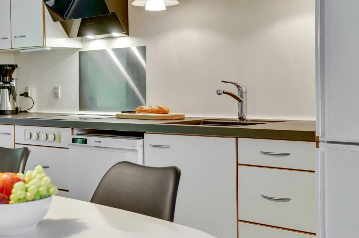 KücheDie Küche ist mit Kühlschrank ausgestattet. Außerdem gibt es 4 Keramik-Kochfelder, Umluftofen, Mikrowelle sowie Geschirrspüler.