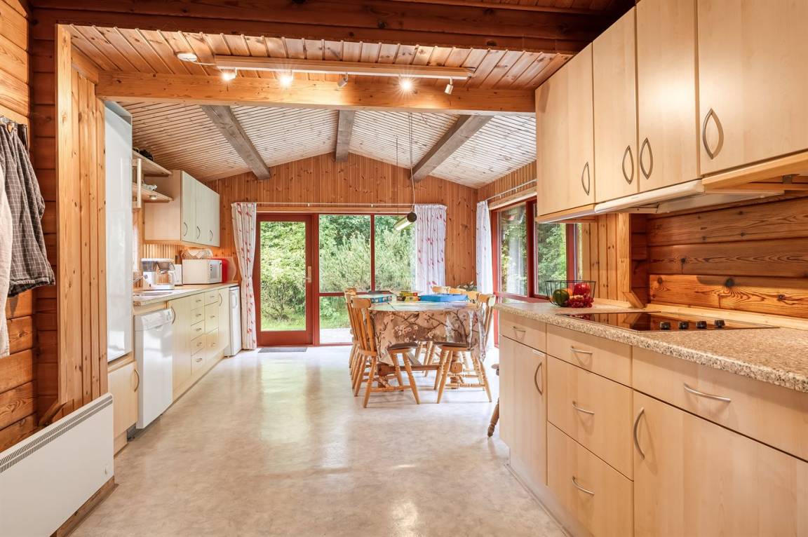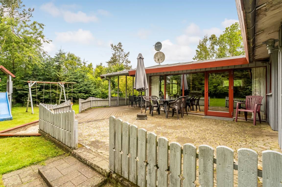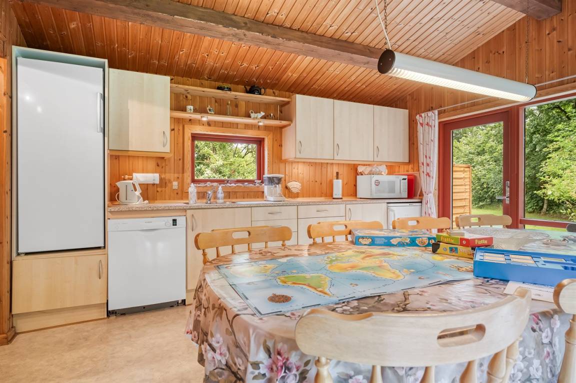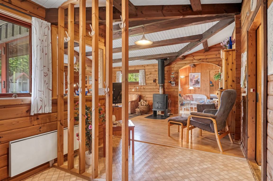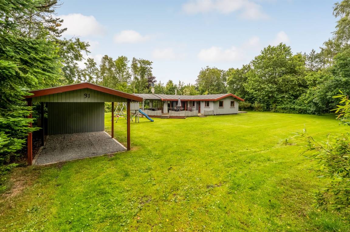 DraußenDie Ferienunterkunft liegt auf einem 2661 m² großen Gründstück, das in einem Wald/Plantage liegt. Die Entfernung zum Fjord beträgt 800 m. Es gibt einen Badesteg in der Nähe. Die nächste Einkaufsmöglichkeit liegt 5000 m entfernt. In einem Abstand von 14000 m gibt es einen Golfplatz. Es steht ein offenes Terrassenareal zur Verfügung. Außerdem gibt es überdachte Terrasse. Schaukel. Sandkasten. Spielturm. Rutsche. Es steht ein Grill zur Verfügung. Es steht ein Carport zur Verfügung. Parkplatz auf dem Grundstück.