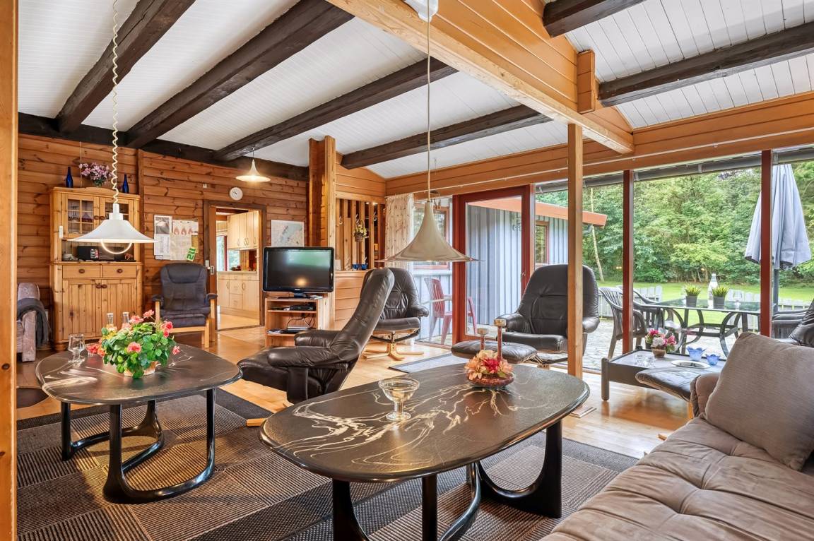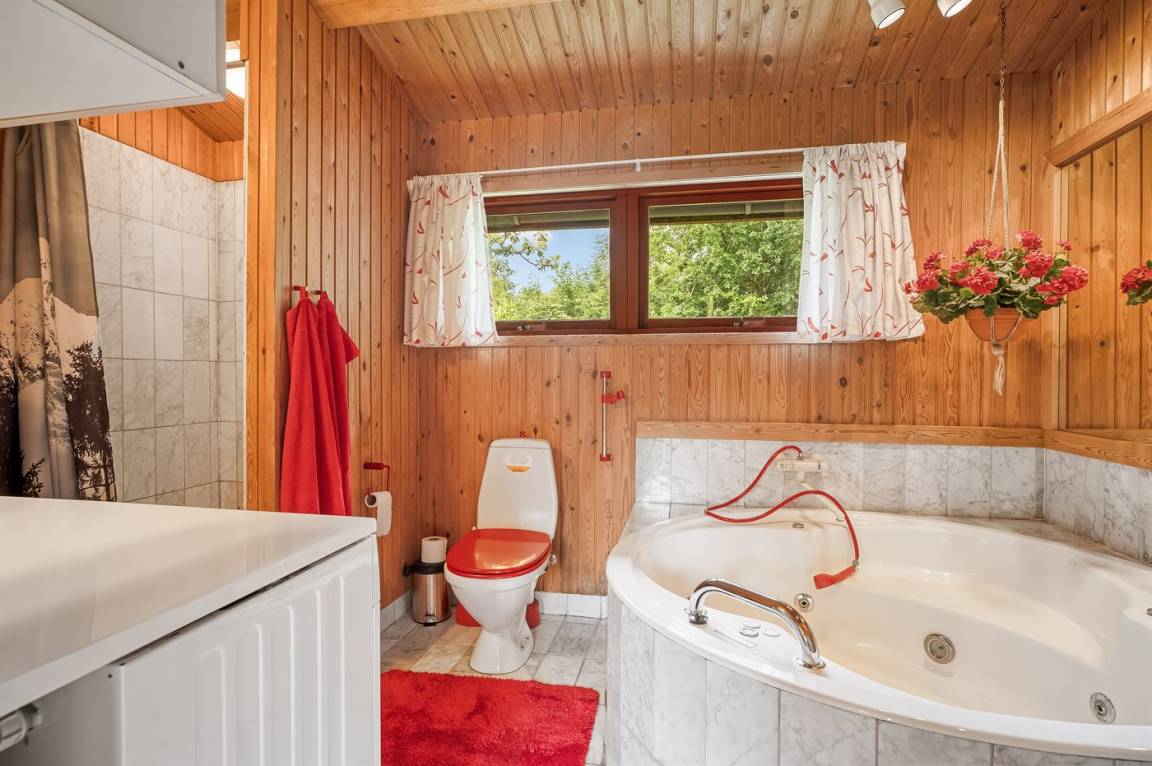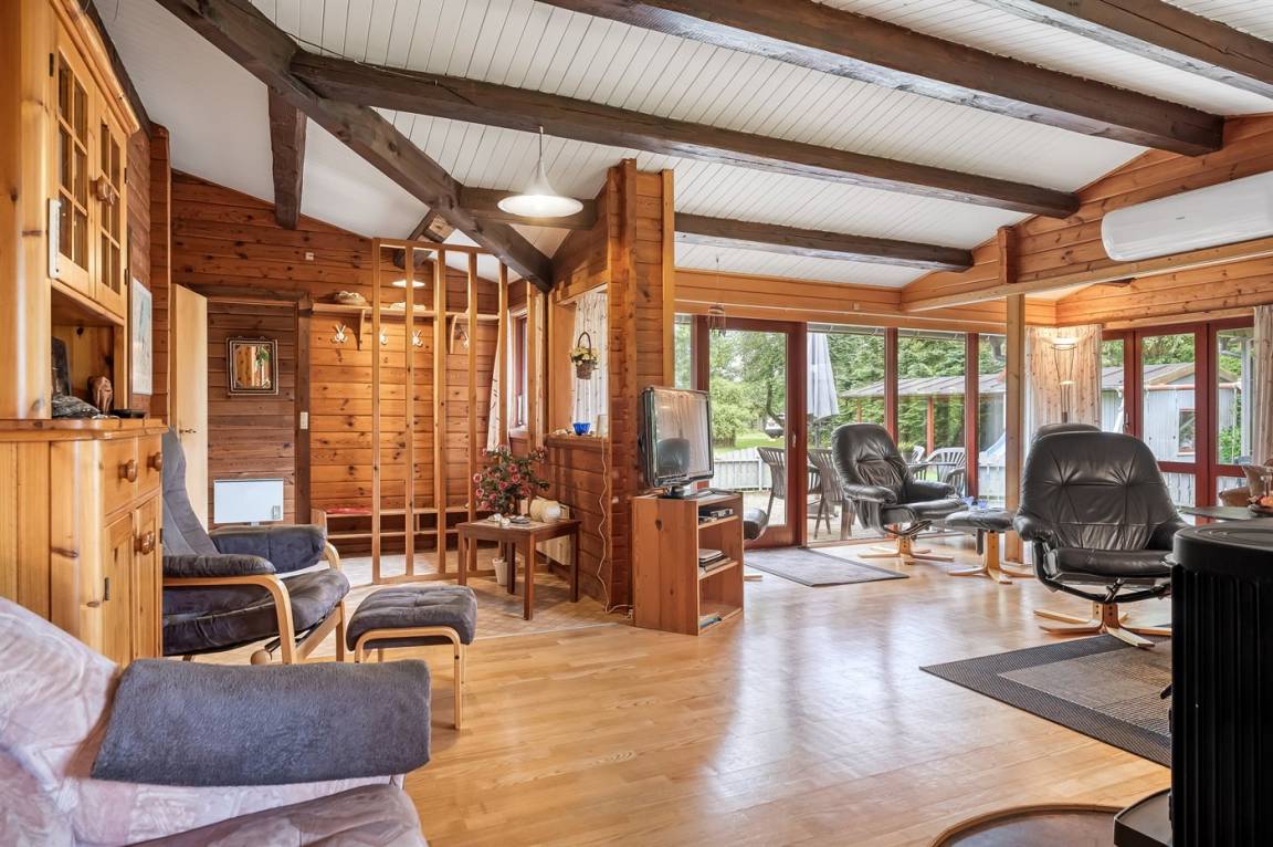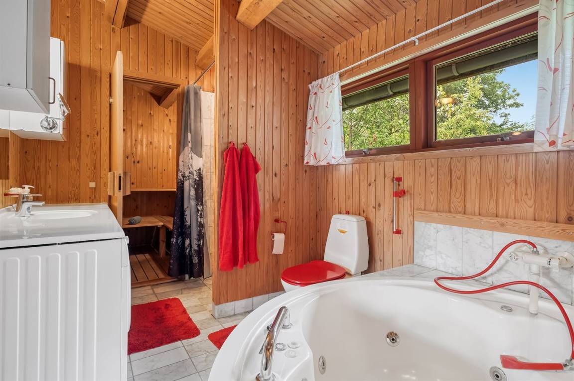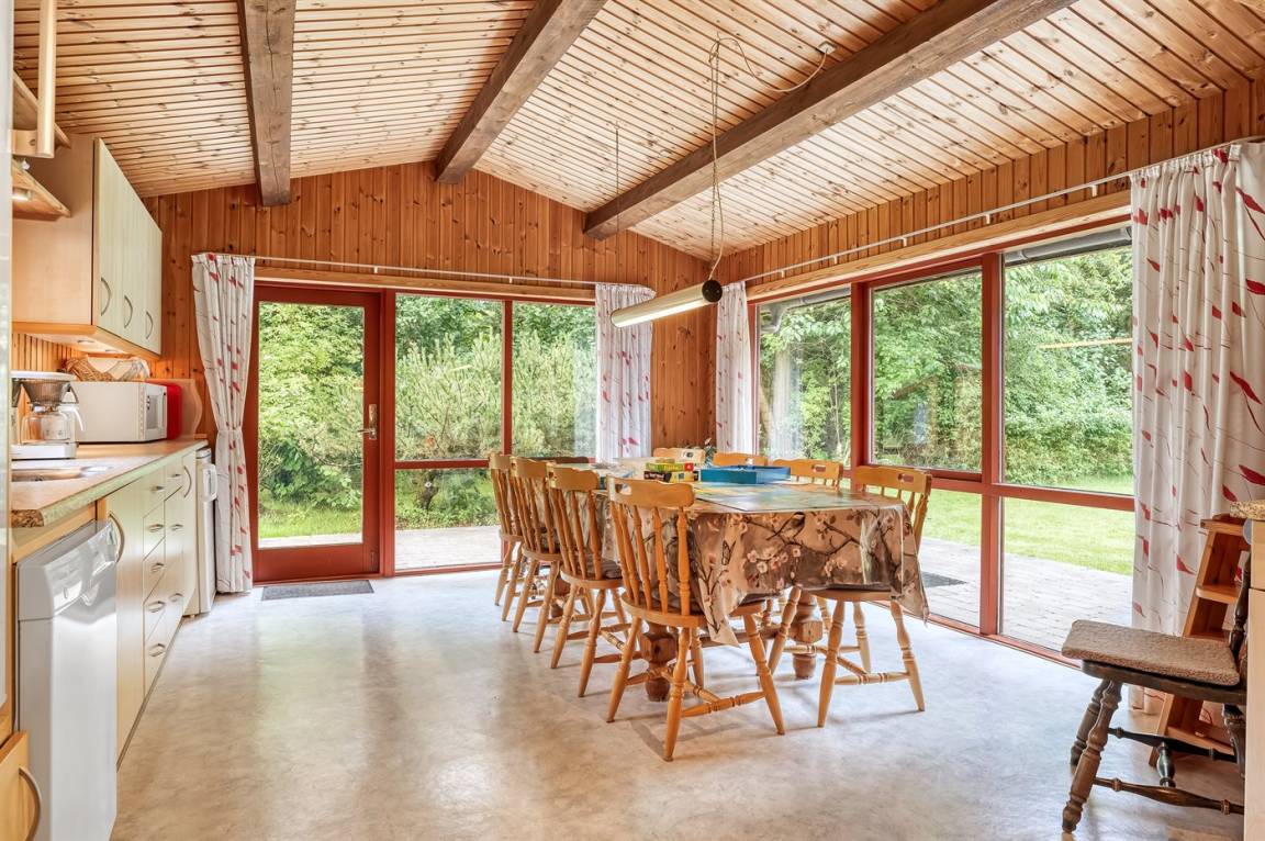 DraußenDie Ferienunterkunft liegt auf einem 2661 m² großen Gründstück, das in einem Wald/Plantage liegt. Die Entfernung zum Fjord beträgt 800 m. Es gibt einen Badesteg in der Nähe. Die nächste Einkaufsmöglichkeit liegt 5000 m entfernt. In einem Abstand von 14000 m gibt es einen Golfplatz. Es steht ein offenes Terrassenareal zur Verfügung. Außerdem gibt es überdachte Terrasse. Schaukel. Sandkasten. Spielturm. Rutsche. Es steht ein Grill zur Verfügung. Es steht ein Carport zur Verfügung. Parkplatz auf dem Grundstück.