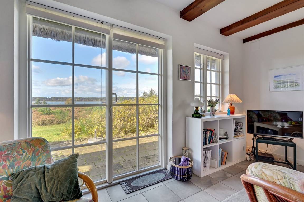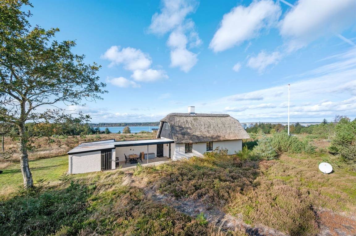 Mit Panoramaaussicht auf den Limfjord und dicht an einem guten Badestrand findet man dieses besonders schöne und reetgedeckte Ferienhaus. Nur einen kurzen Spaziergang vom Haus entfernt (etwa 10 Minuten) gibt es einen Badesteg.