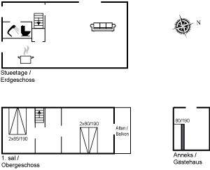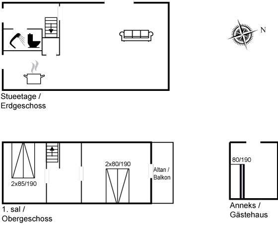 SchlafverhältnisseDie Schlafplätze verteilen sich auf 3 Schlafräume. 4 Schlafplätze in Doppelbetten. 2 Schlafplätze in einem Etagenbett.- 2 von diesen Schlafplätzen befinden sich im Gästehaus.