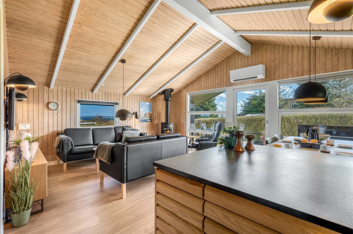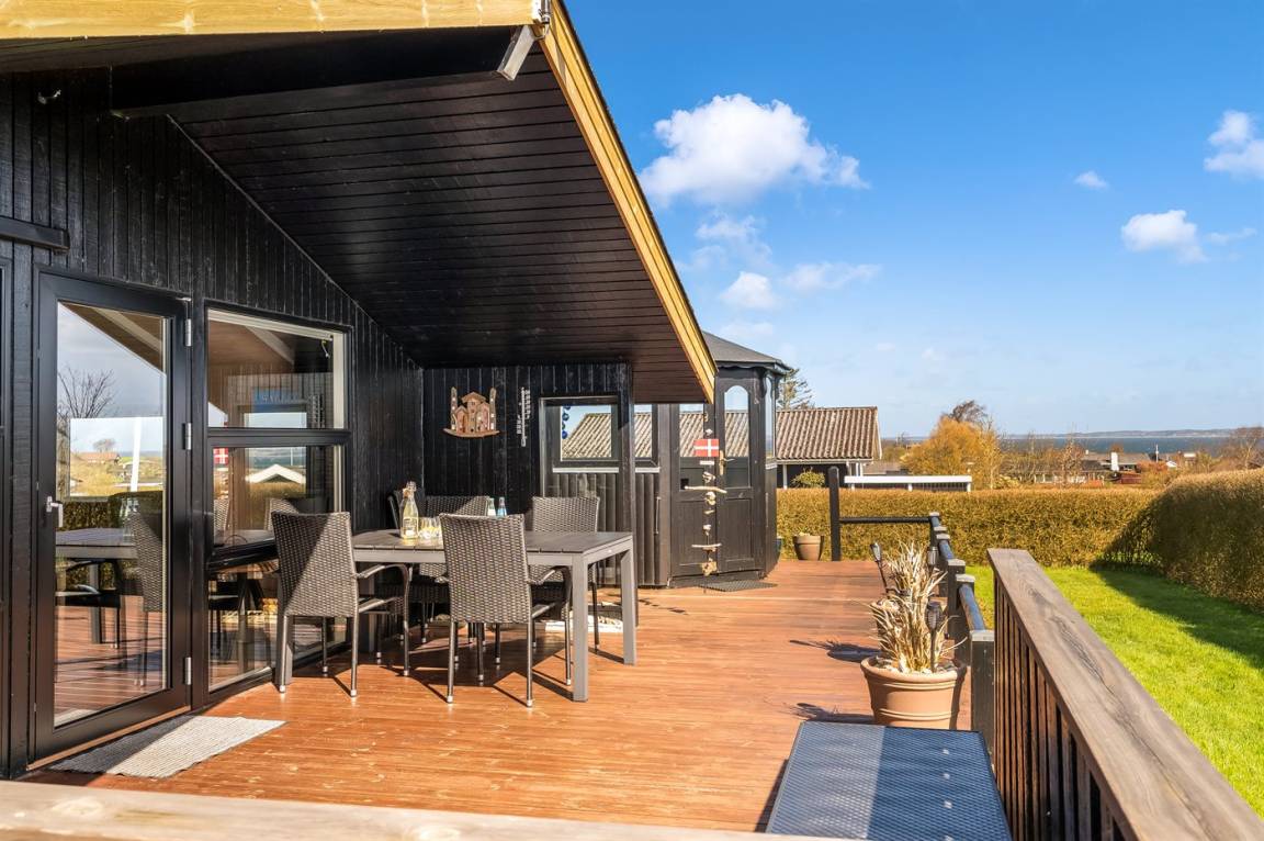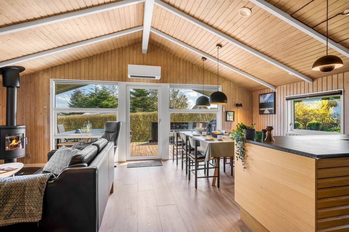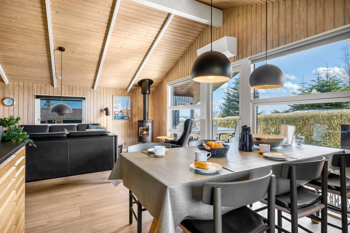 Helles und einladendes Ferienhaus mit herrlicher Lage in der Nähe des Limfjords mit Blick auf das Wasser. Das Ferienhaus ist praktisch und modern eingerichtet für einen guten Ferienaufenthalt, und im Garten gibt es sowohl Möglichkeiten zum Spielen als auch zum Genießen des Urlaubs in Ruhe und Frieden.