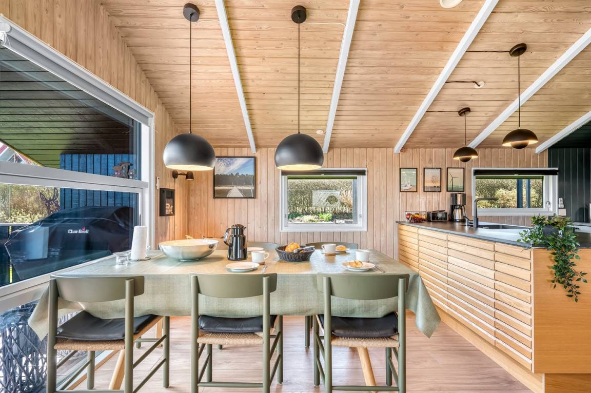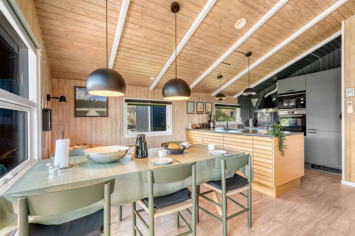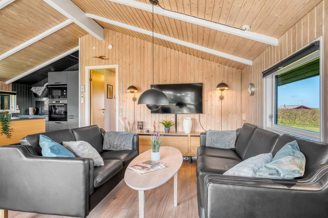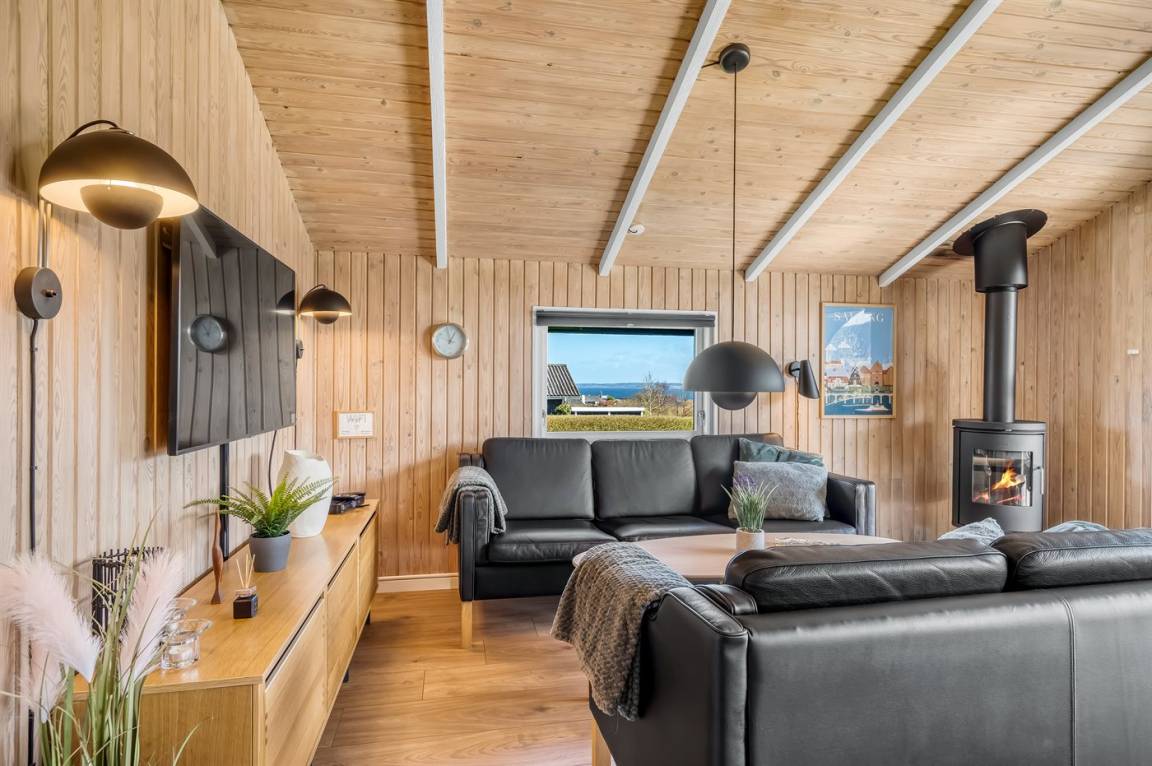 Helles und einladendes Ferienhaus mit herrlicher Lage in der Nähe des Limfjords mit Blick auf das Wasser. Das Ferienhaus ist praktisch und modern eingerichtet für einen guten Ferienaufenthalt, und im Garten gibt es sowohl Möglichkeiten zum Spielen als auch zum Genießen des Urlaubs in Ruhe und Frieden.