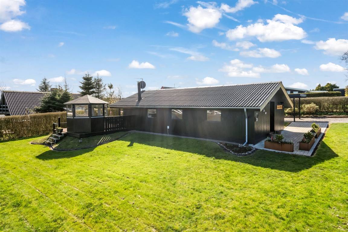 DraußenDie Ferienunterkunft liegt auf einem 800 m² großen Naturgrundstück. Die Entfernung zum Fjord beträgt 350 m. Die nächste Einkaufsmöglichkeit liegt 3000 m entfernt. In einem Abstand von 18000 m gibt es einen Golfplatz. Es steht ein 25 m² Terrassenareal zur Verfügung. Außerdem gibt es 15 m² überdachte Terrasse. Fußballtor. Es steht ein Grill zur Verfügung. Parkplatz auf dem Grundstück.