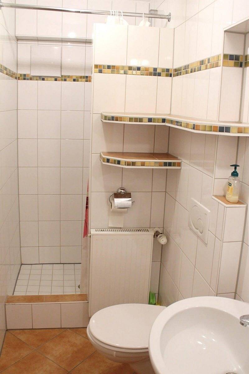 Im Schlafzimmer mit Doppelbett ist ein Kinderbett ist zustellbar. Das Badezimmer hat Dusche, WC und Waschtisch.