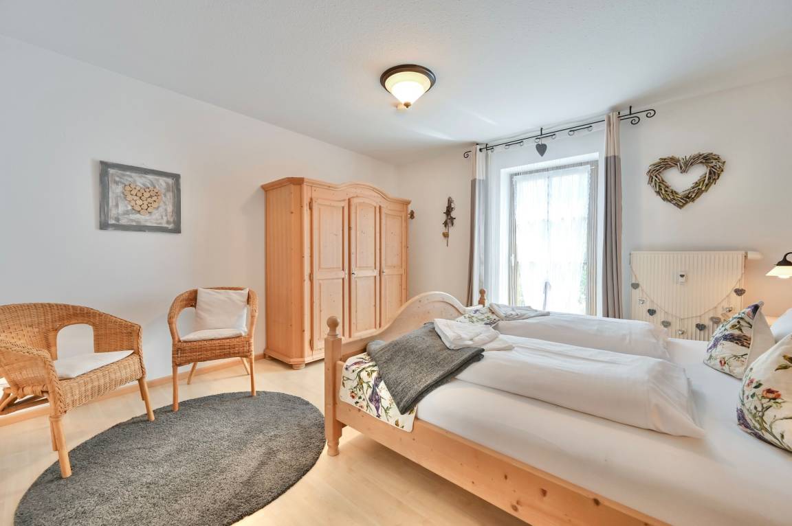 Der offen gestaltete Ess- und Wohnbereich mit gemütlicher Allgäuer Essgruppe lädt zum gemeinsamen Essen, Spielen oder Lesen ein. Bücher und Gesellschaftsspiele stehen bereit, sodass auch ruhige Abende in entspannter Atmosphäre garantiert sind. Das separate Schlafzimmer ist mit einem komfortablen Doppelbett 180 x 200 cm, boxspringähnlichen Matratzen sowie einem Kissenmenü ausgestattet. Allergikerfreundliche Kissen und Zudecken ohne Federn sowie bereits bezogene Betten sorgen für einen angenehmen Schlafkomfort.
