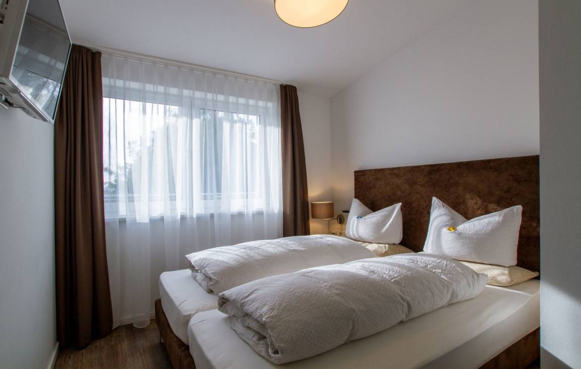 Zur Ausstattung gehören Bettwäsche, Handtücher, Kühlschrank, teilweise Mikrowelle, Cerankochfeld, Geschirrspüler (nicht im 1-Raum-Appartement), Nespresso-Kapsel-Kaffeemaschine, Wasserkocher, Toaster sowie Dusche/WC, Haartrockner, Flachbild-TV im Wohn- und Schlafbereich, begehbarer Kleiderschrank (in den Komfort-Appartements).
