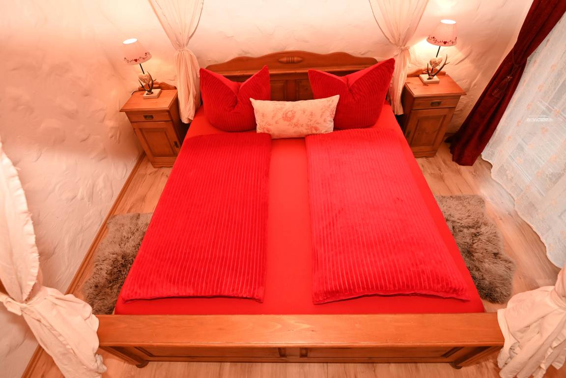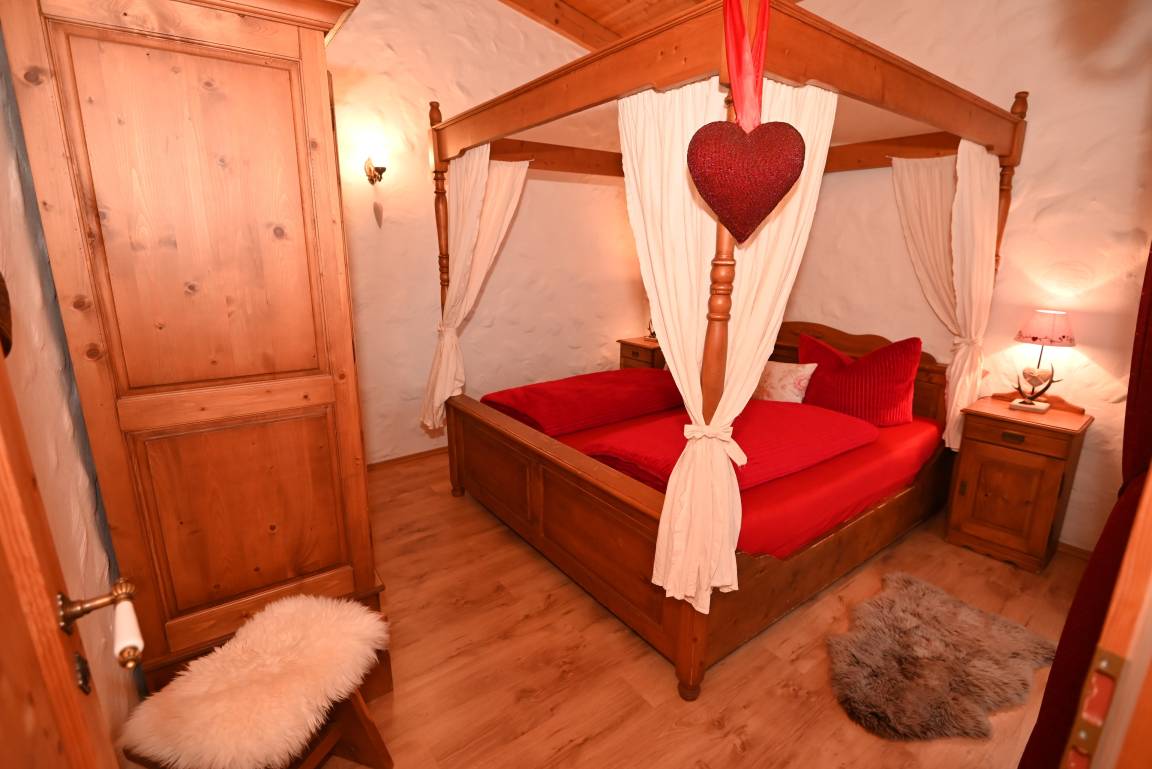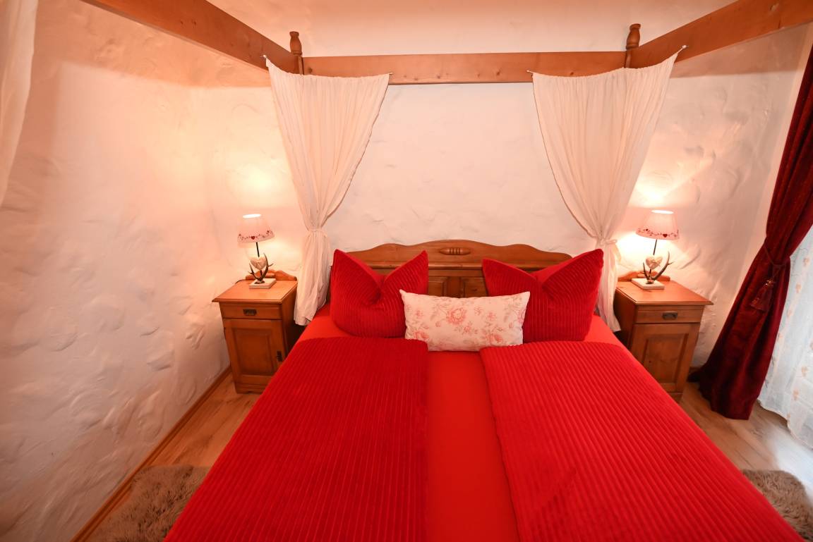 - Schlafzimmer I mit Himmelbett (180x200 cm) und Kleiderschrank