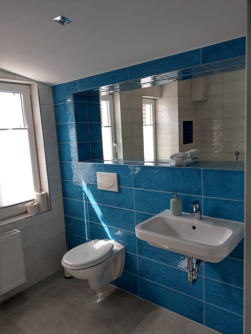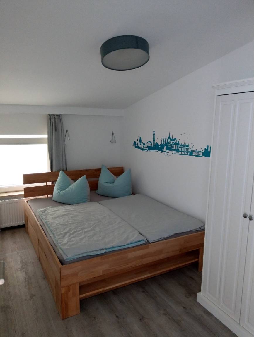 Im Dachgeschoss (2. OG) befindet sich die große Etagen- Fereinwohnung mit herrlichem Blick über die Stadt und auf den Alten Strom.