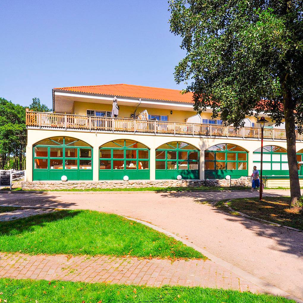 Im Ferienpark befinden sich Rezeption, Mini-Markt (Juni-September), Bistro, Restaurant, Grillplatz, Mini-Club (nur in den Sommerferien), Spielplätze, Beach-Volleyballfeld, Tischtennis. Schönes Außen-Schwimmbad (10x20 m, nicht beheizt) mit Ruheliegen, Strandkörben. Wellnessbereich (2 Stunden am Tag) mit beheiztem Schwimmbad, großer Saunalandschaft (Finnische und Bio-Sauna, IR-Kabine), Ruheraum, Solarium, Massagen; Fahrräder, Tennisplätze, Squash-Halle, Billard, Minigolf, Spielautomaten.
