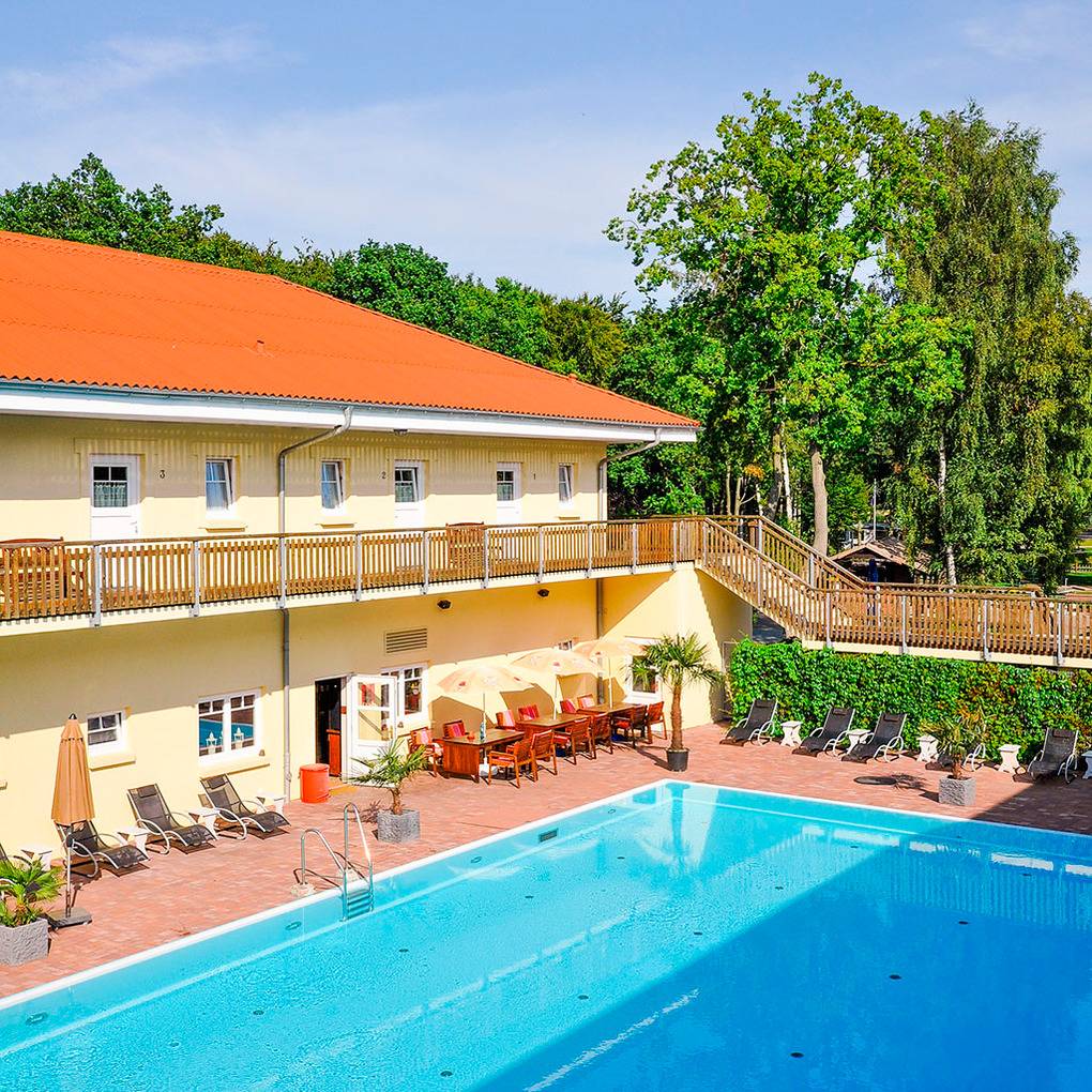 Ort: Markgrafenheide. Gepflegter Ferienpark in einzigartiger Lage zwischen Ostsee und Rostocker Heide. Zu der Anlage gehört ein Campingplatz. Ostseestrand, Naturschutzgebiet je ca. 250 m. Einkaufen, Restaurants im Ferienpark. Ortsmitte, Busse nach Warnemünde, Rostock 650 m. Hafenrundfahrten 400 m.