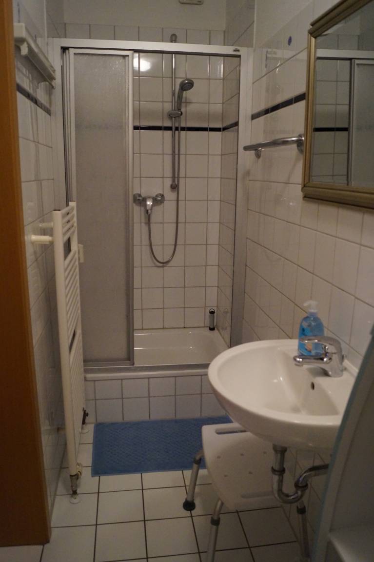 Das Duschbad verfügt über eine Handtuchheizung und auch über einen Fön.