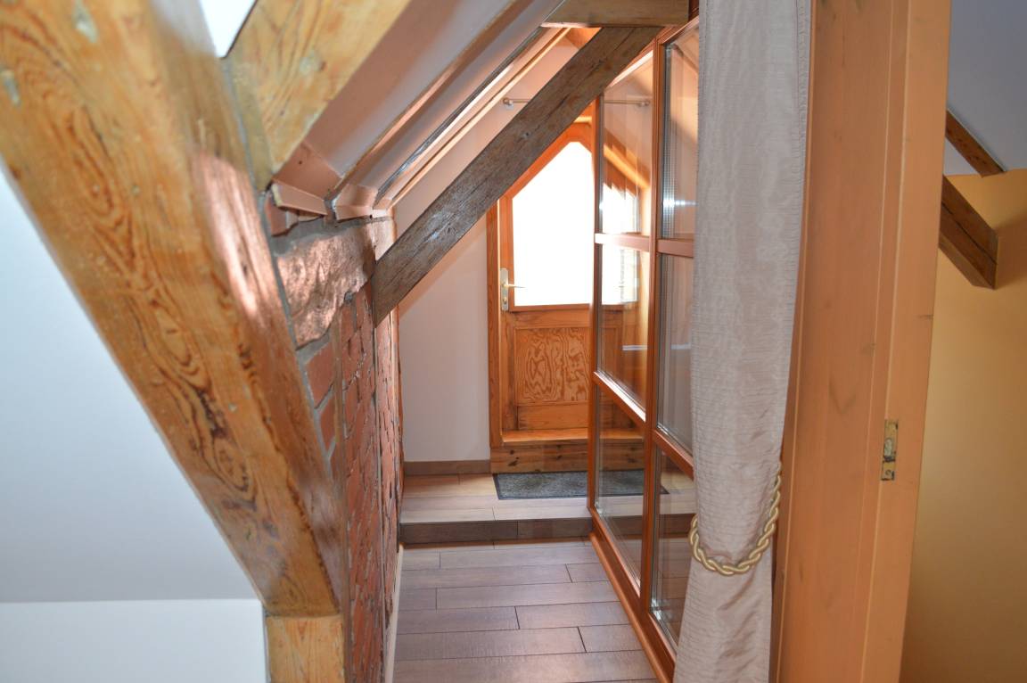 Unsere kleine Dachgeschosswohnung mit Dachbalken wurde gemütlich eingerichtet und eignet sich ideal für Paare oder Alleinreisende.