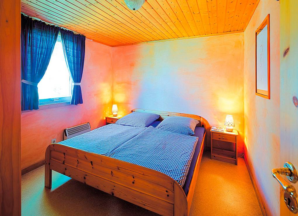 D 129.421 Ferienhaus 3-6 Pers.: 3-Zimmerhaus, 73 qm Wohnfläche. Parterre: Komplett holzvertäfelter, bis zum Dachgiebel ausgebauter Wohn-/Essraum mit Sitzgruppe, Küchenzeile (Mikrowelle). Doppelzimmer. 2-Bettzimmer mit Etagenbett. Bad/WC. Vom Wohnraum aus steile Stiege auf die gemütliche Galerie: 2-Bettzimmer mit Schrägen, offen zum Wohnraum.