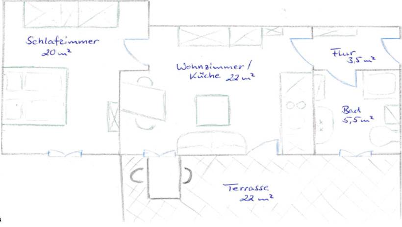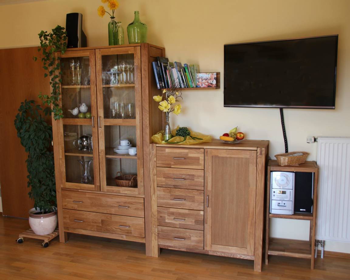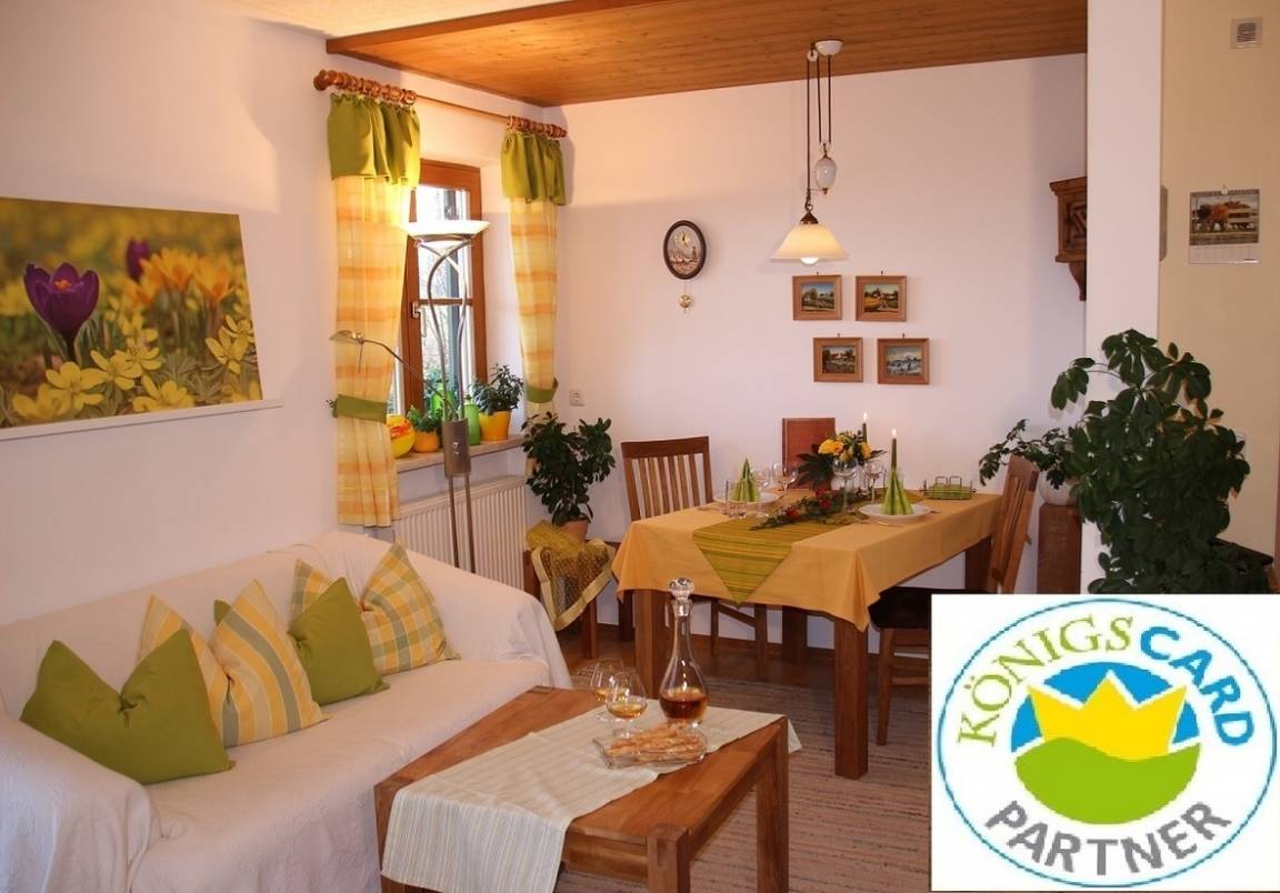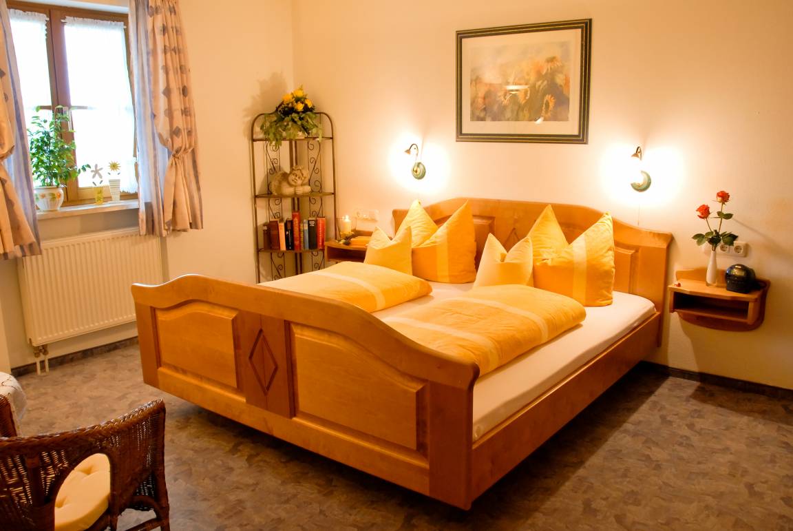 Ferienwohnung für 2 Personen, 51 qm, eigener Hauseingang. Unsere eingerichtete Ferienwohnung für zwei Personen verfügt über einen separaten Eingang. Sie besteht aus einem Schlafzimmer mit Doppelbett, einer Stube mit Sitzecke und Couch, die in eine voll ausgestattete Wohnküche integriert ist, einem Bad mit Dusche und einer Diele mit Garderobe. Wenn Sie mit herrlichem Panoramablick frühstücken möchten, können Sie es sich auf der großzügigen Terrasse bequem machen.